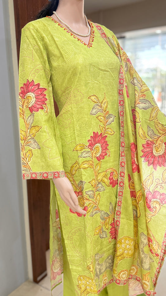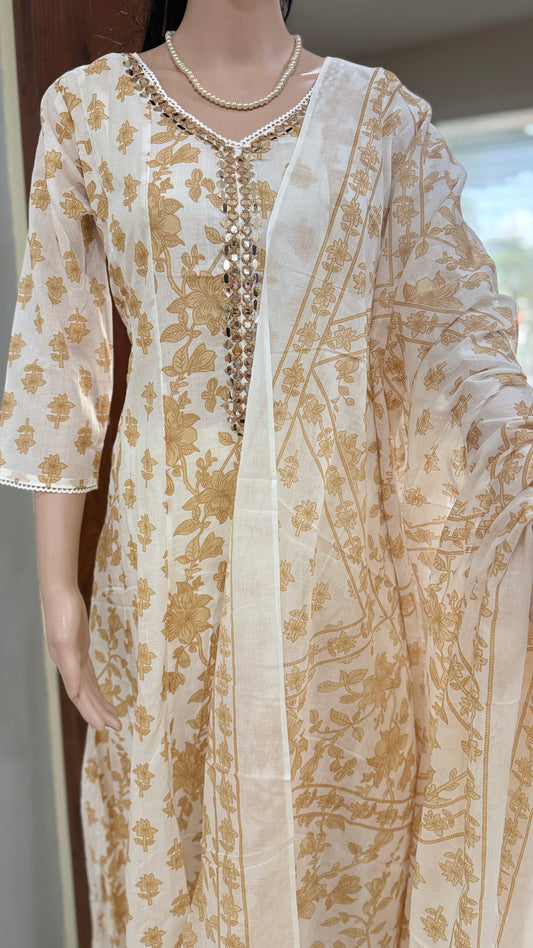 Cotton kurta pant dupatta set for women with lining, printed ethnic 3 piece suit set, sizes 38 to 46