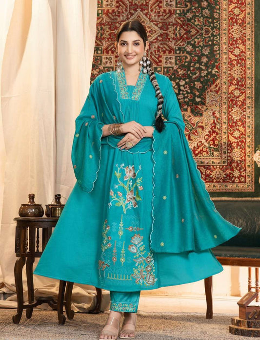Unstitched Modal Embroidered Dress Material with Santoon Inner & Bottom and Chanderi Embroidered Dupatta