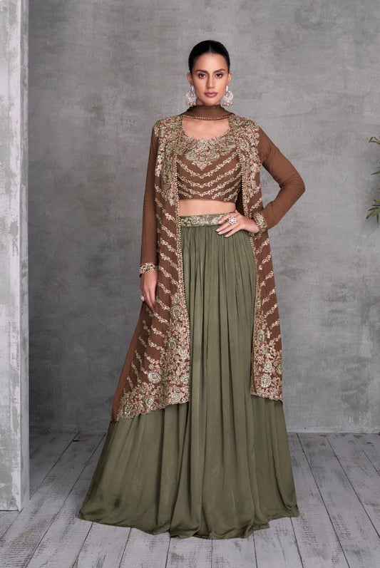Premium Georgette Embroidered Lehenga Set for Women with Short Shrug and Blouse β Wedding Wear