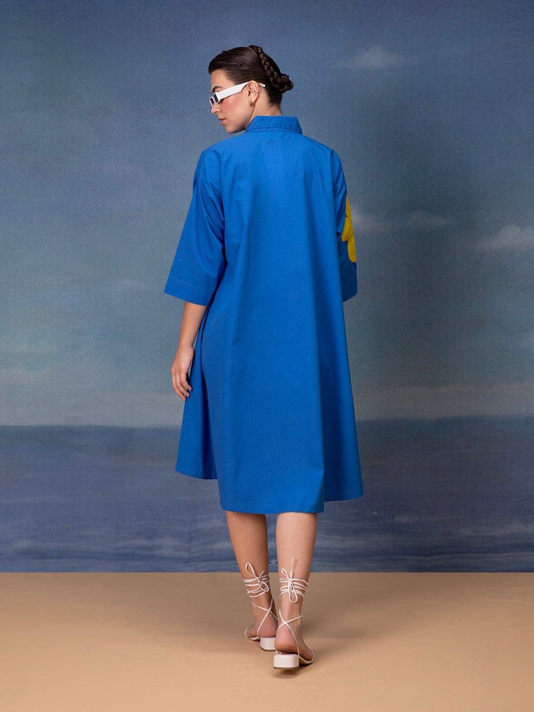 Crafted from premium poplin cotton, this applique midi dress offers a structured yet breathable feel, perfect for all-day comfort. The design features oversized floral applique motifs in contrasting colors, adding a playful and artistic flair. Its relaxed fit and midi length make it an easy choice for casual outings, brunches, or boutique styling. Available in one base shade with mix-and-match colour customization options, the dress is tailored in sizes M to XL for a flattering and versatile fit.