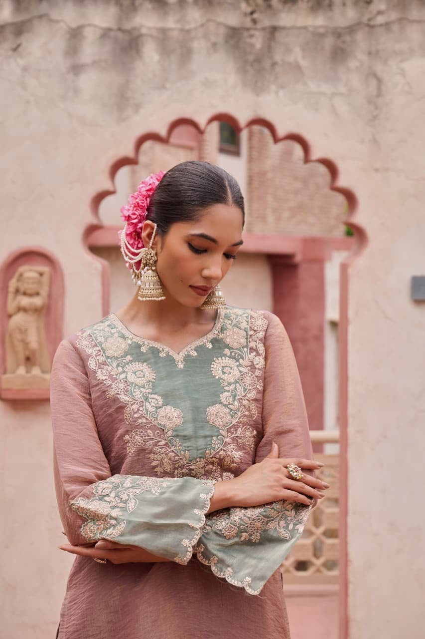 Crush Tissue Kurta Palazzo Dupatta Set with Detailing Work – Women’s Ethnic Wear (Sizes 40–46)