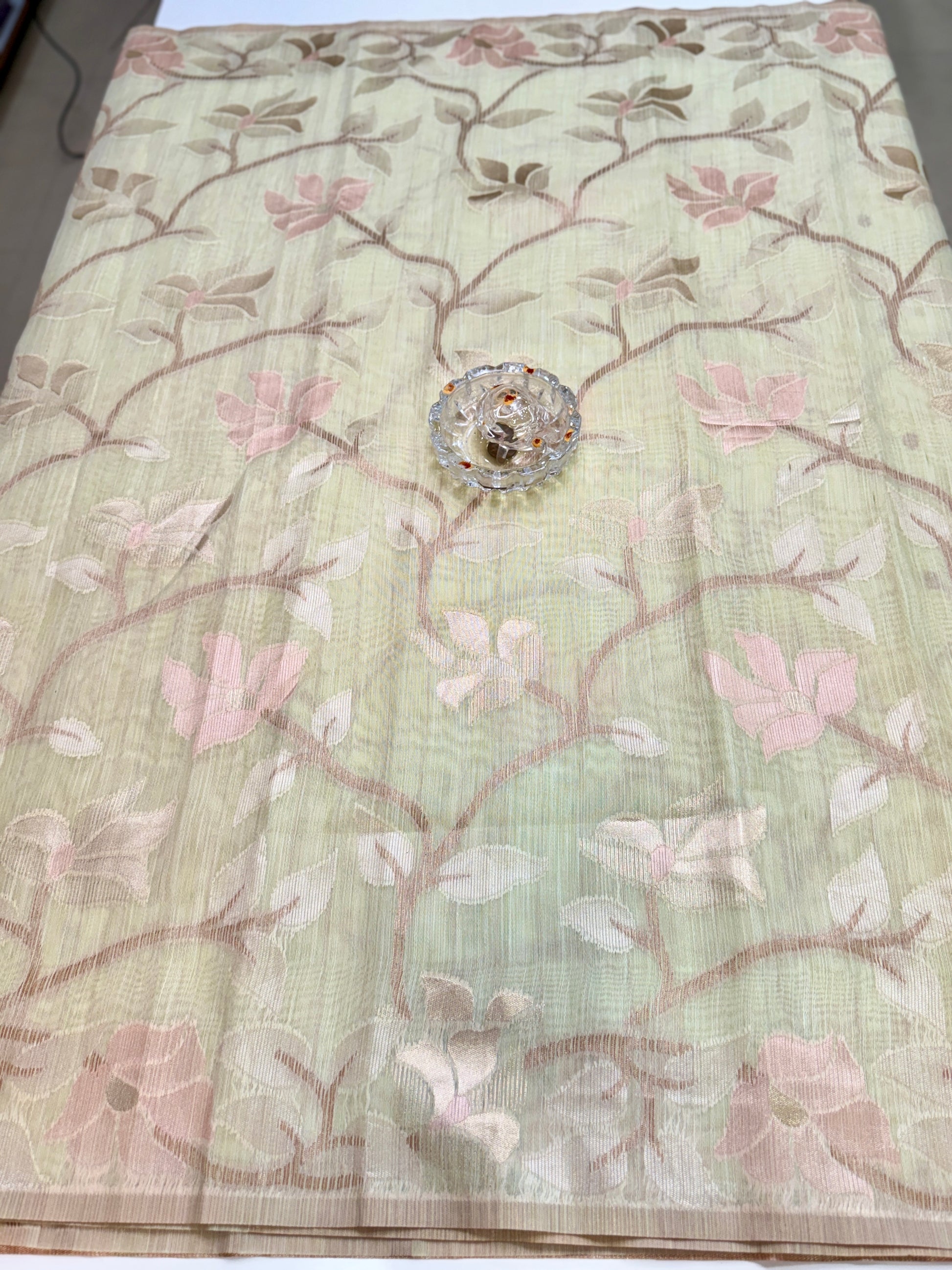 Jamdhani Cotton Saree with Zari Weave and Tassel Pallu – Pastel Festive Wear