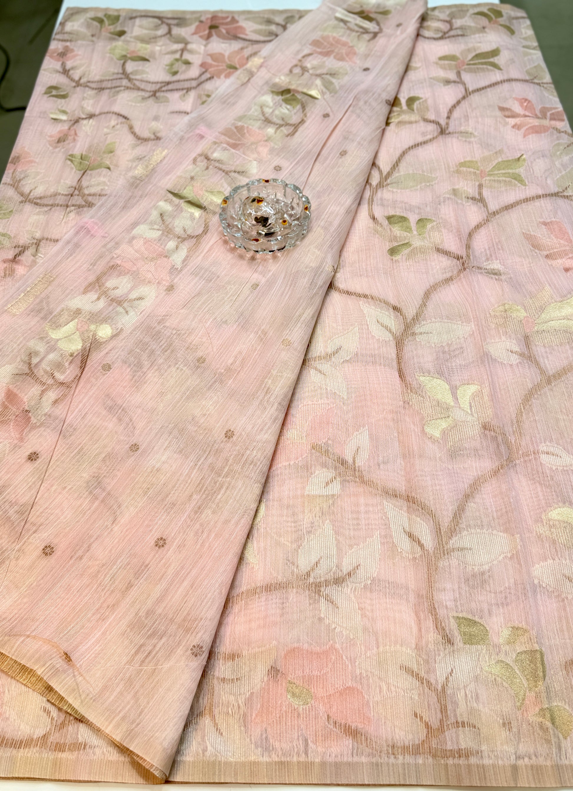 Add timeless grace to your ethnic wardrobe with this Jamdhani cotton saree featuring delicate zari weaving and a tassel pallu. Crafted in soft cotton for all-day comfort, this saree blends traditional Jamdhani artistry with modern pastel tones. The intricate woven motifs enhance its festive appeal, making it suitable for cultural events, office wear, or casual gatherings. Each saree comes with a matching blouse piece, giving you the freedom to style for both minimal and festive looks. Perfect for summer wear, pujas, and gifting, this Jamdhani cotton saree reflects effortless elegance and refined taste.