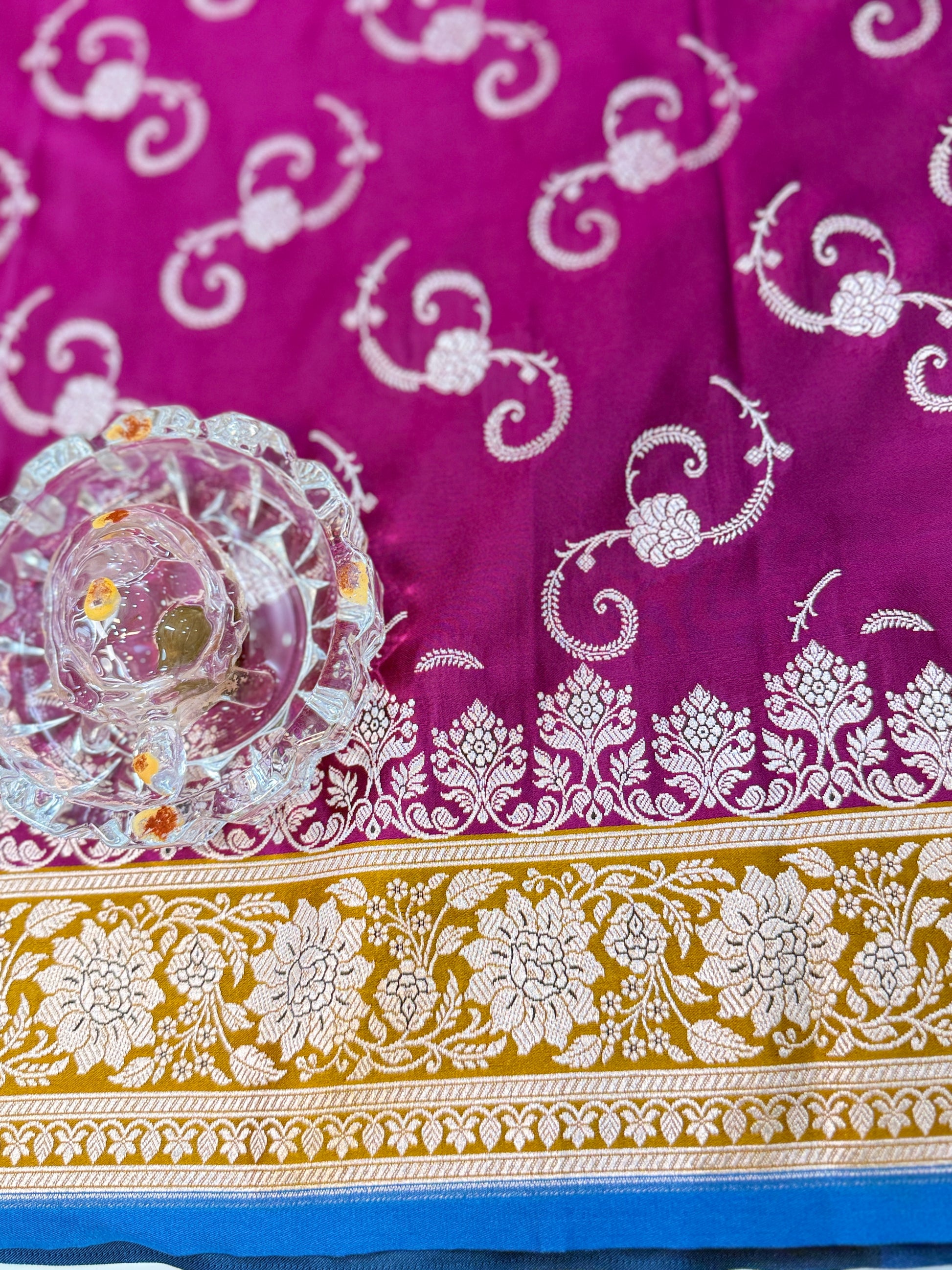 Work/Design: Woven Banarasi motifs with zari floral and paisley weaving