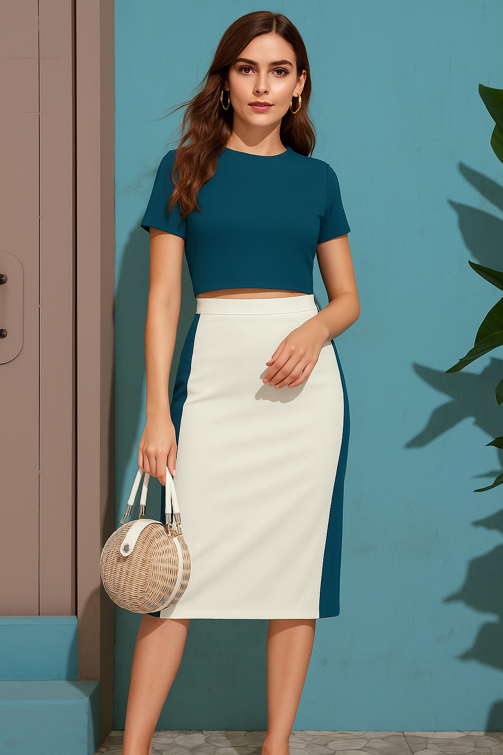 SEO Keywords: Women’s polyester spandex co-ord set, Morpich collection two-piece outfit, stretch fit casual wear
