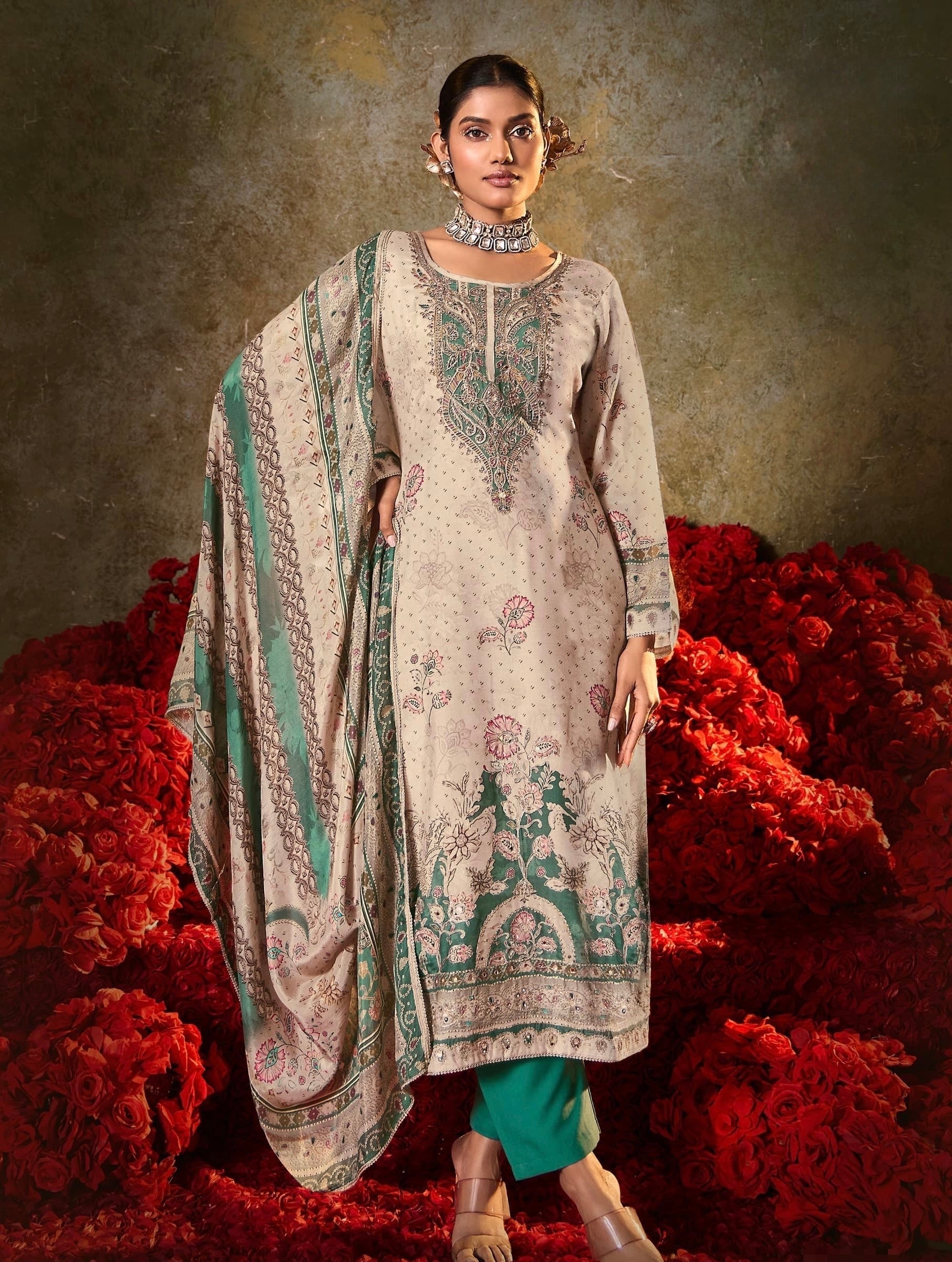 Muslin Digital Print Kurta Pant Dupatta Set with Aari Work and Swarovski Detailing – L to 3XL