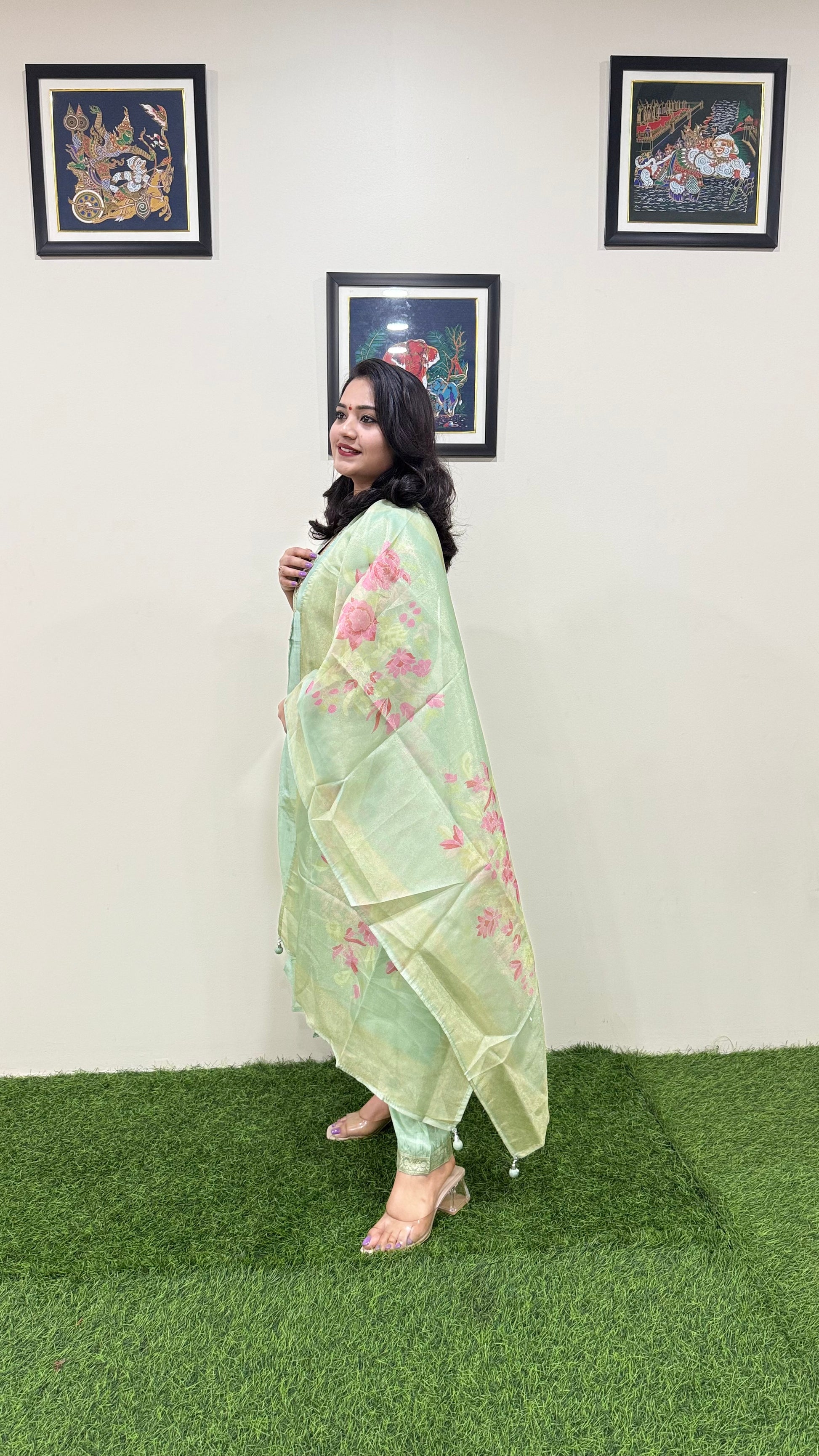 Pure Tissue Kurta Pant Dupatta Set with Intricate Handwork – Sizes L to XXL