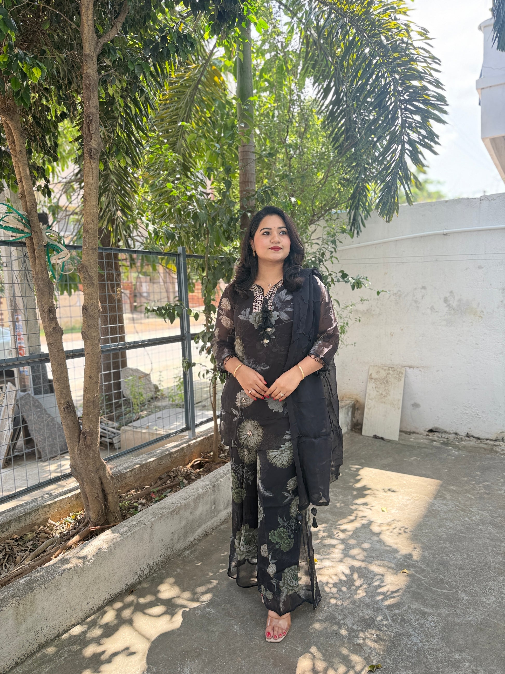 Organza Kurta Pant Dupatta Set with Detailing Work – Women’s Ethnic Wear (Sizes M–XXL)