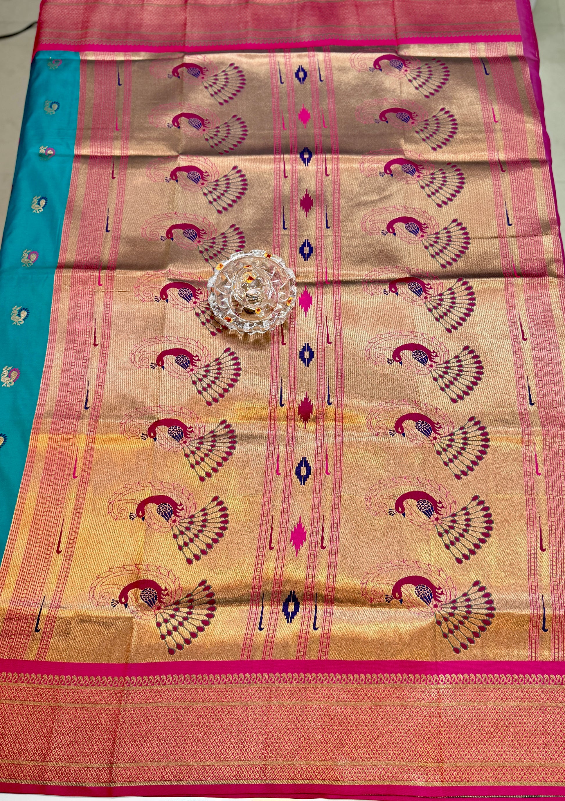 Design: Paithani-style motifs on border & pallu
