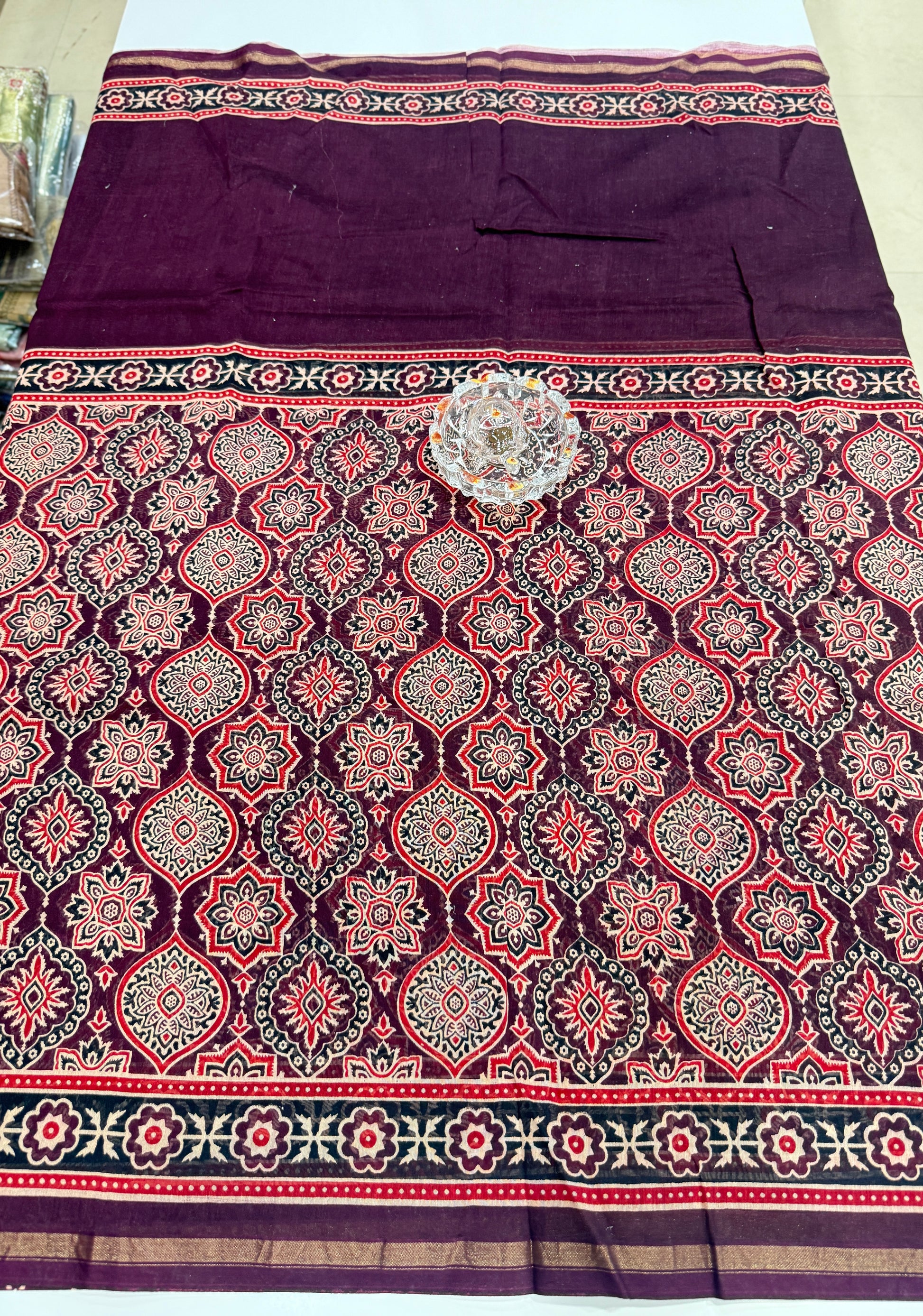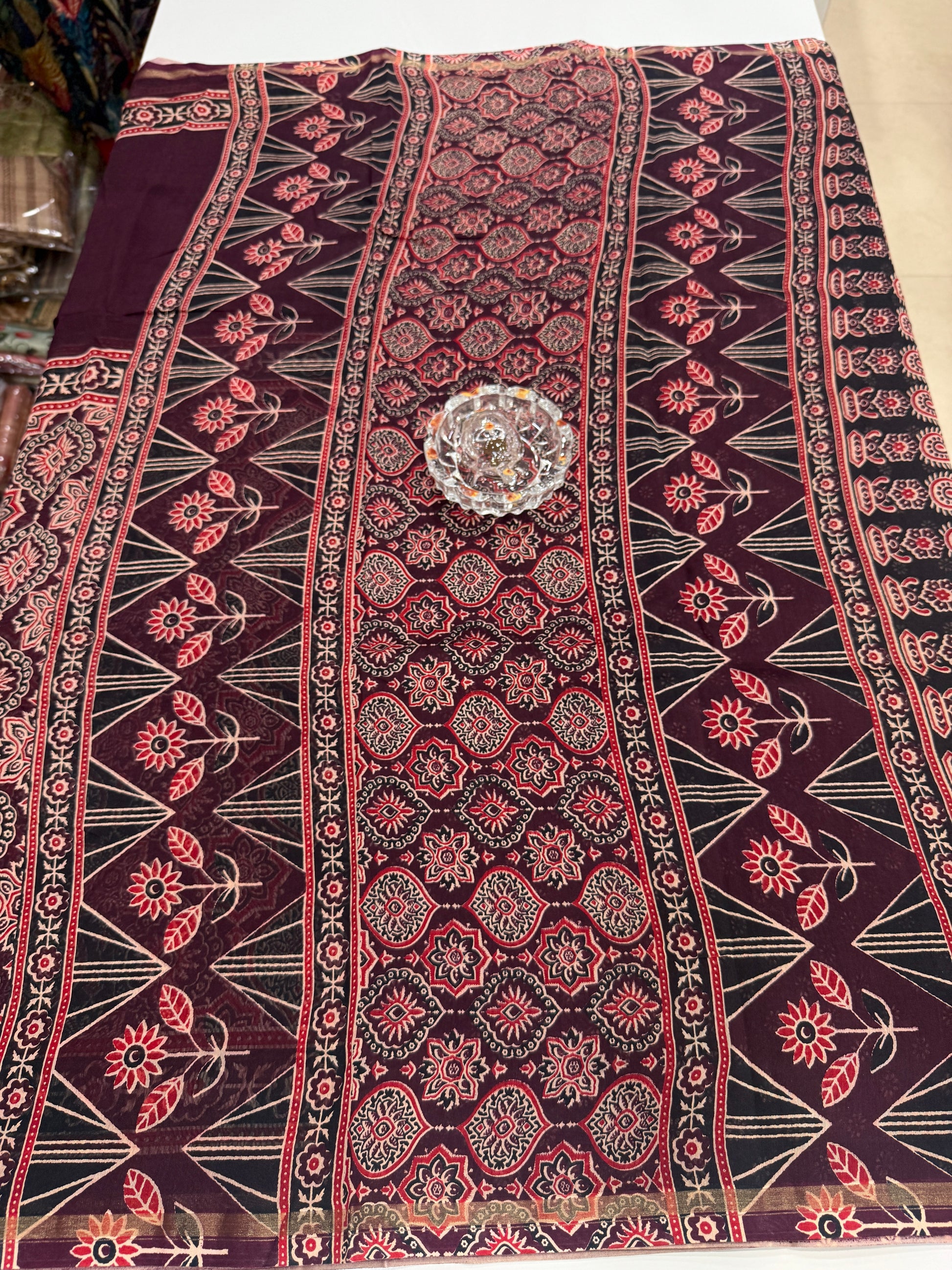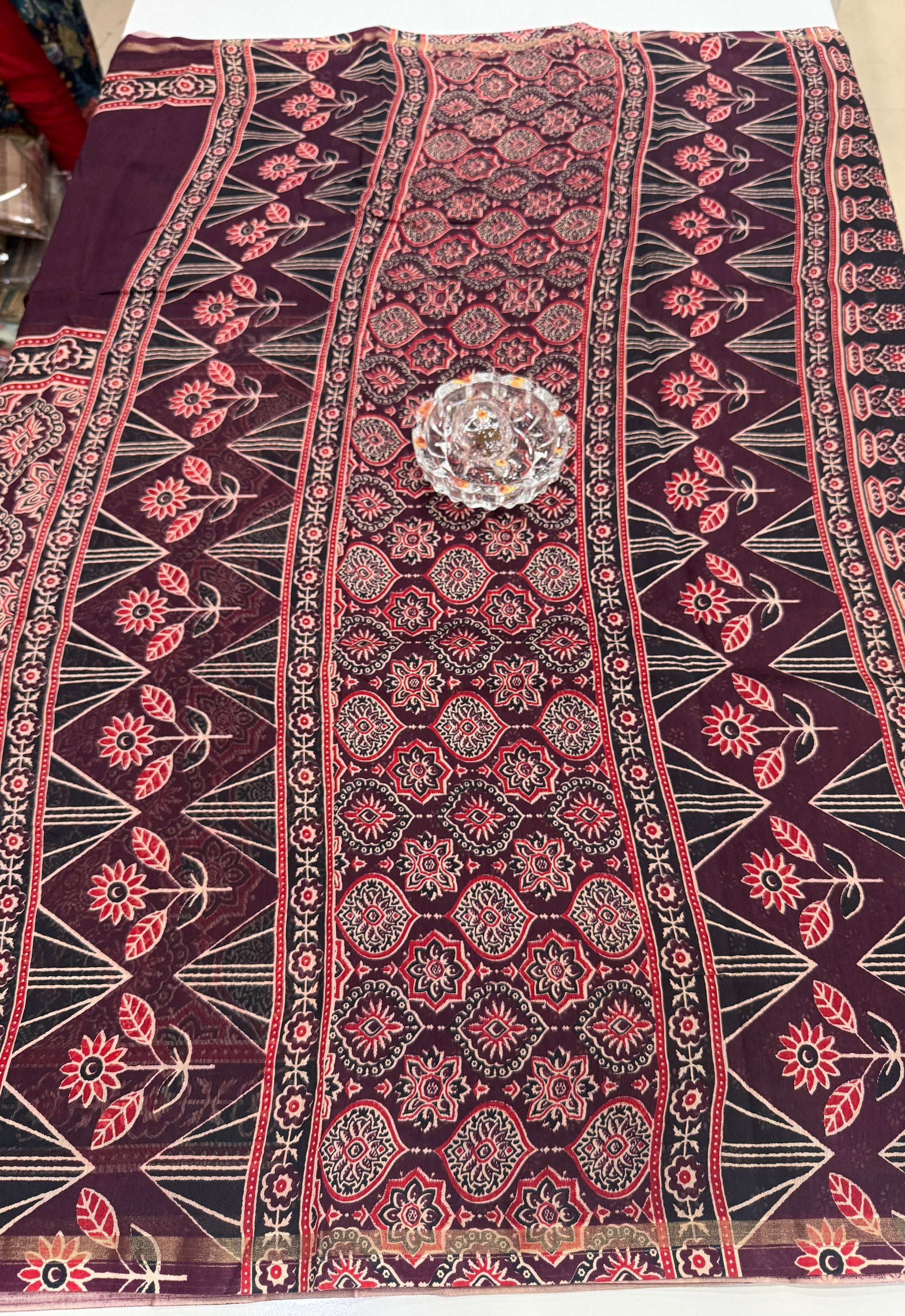 Pure Chanderi Silk Saree with Intricate Handblock Print and Blouse Piece – Traditional Wear for Women