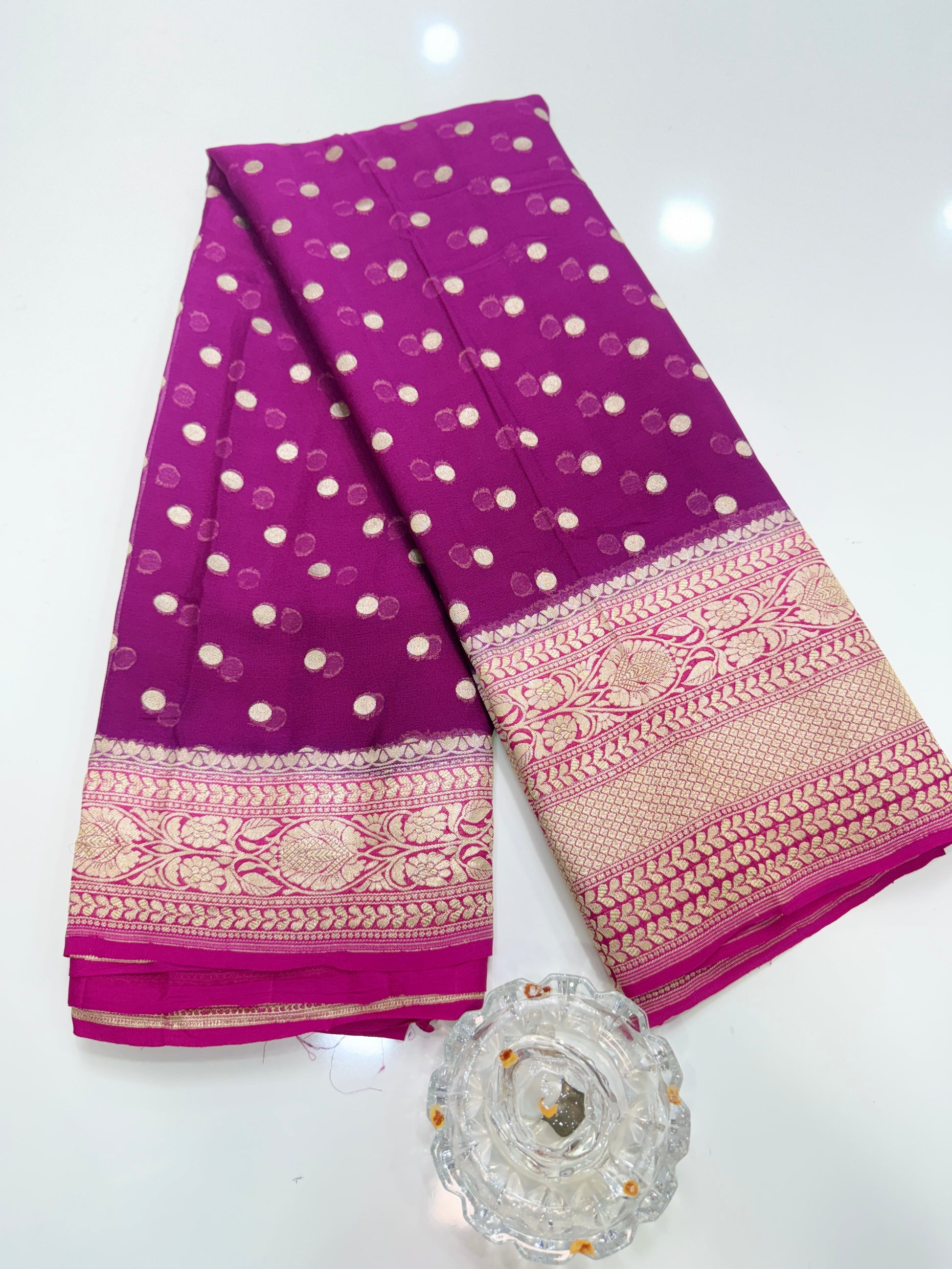 SEO Keywords: pure georgette kaddi saree, handwoven silk mark saree, zari jaal georgette saree, water zari festive saree, wedding wear georgette saree