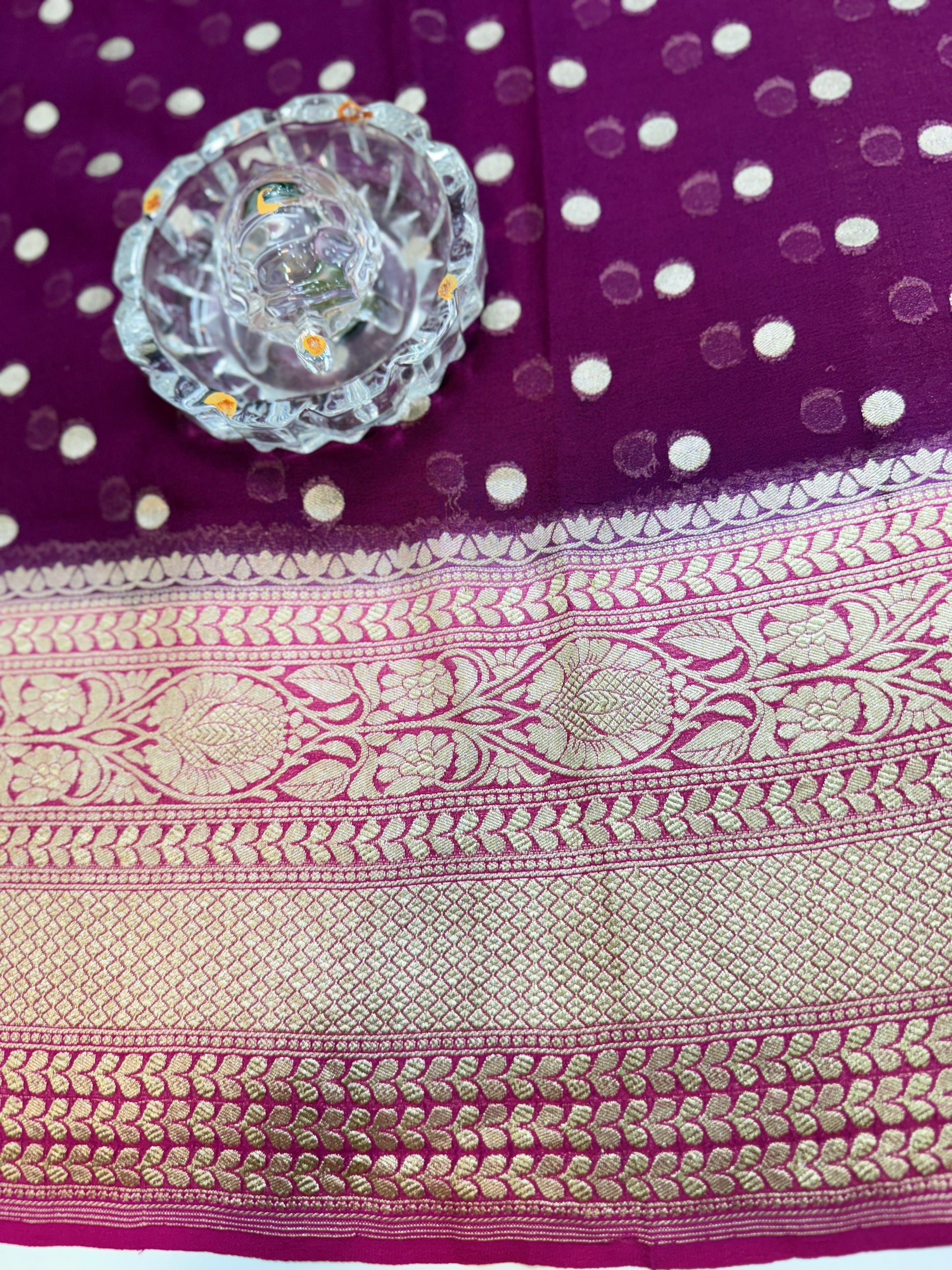 Pure Handwoven Kaddi Georgette Saree with Water Zari Jaal Weaving – Silk Mark Certified