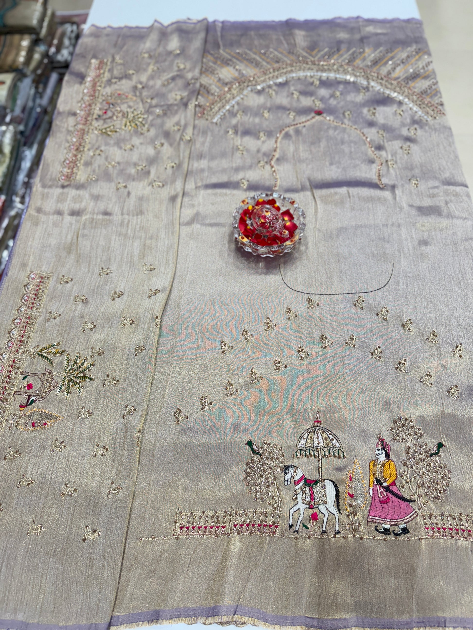 • Work – Zari, Thread, Cut Dana, Moti & Mirror Heavy Handwork