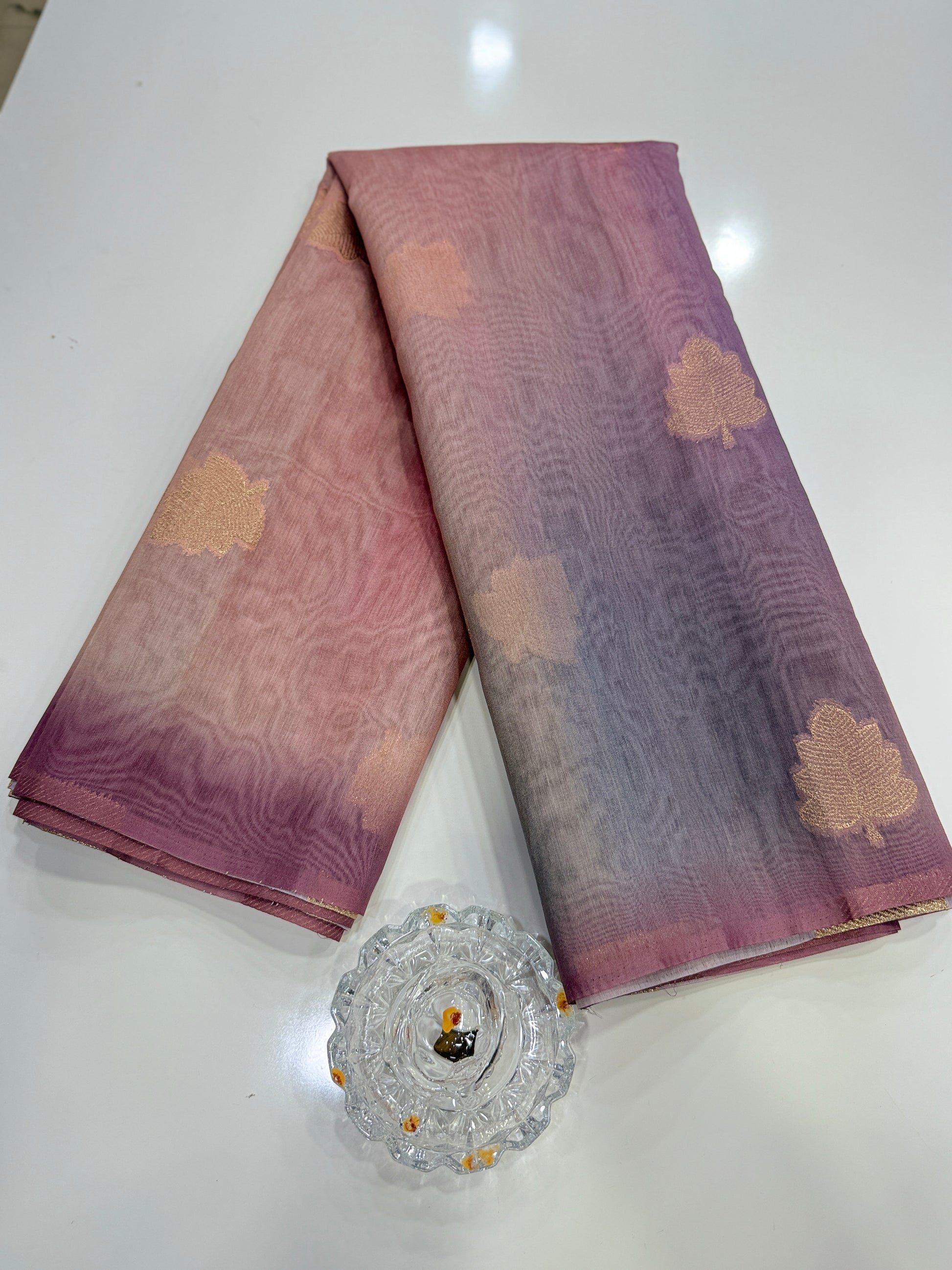 Soft Handloom style Silk Saree with Zari Leaf Weaving and Gradient Shading – Festive Wear Saree for Women