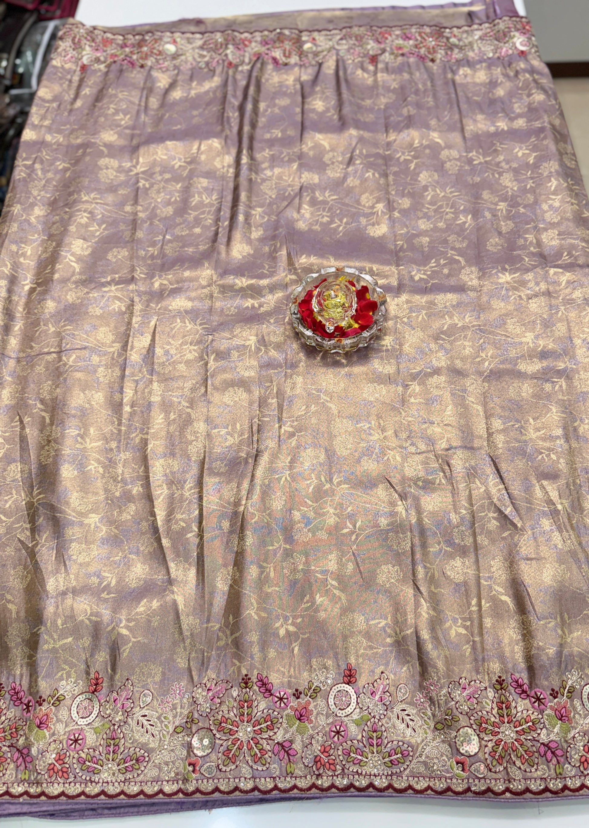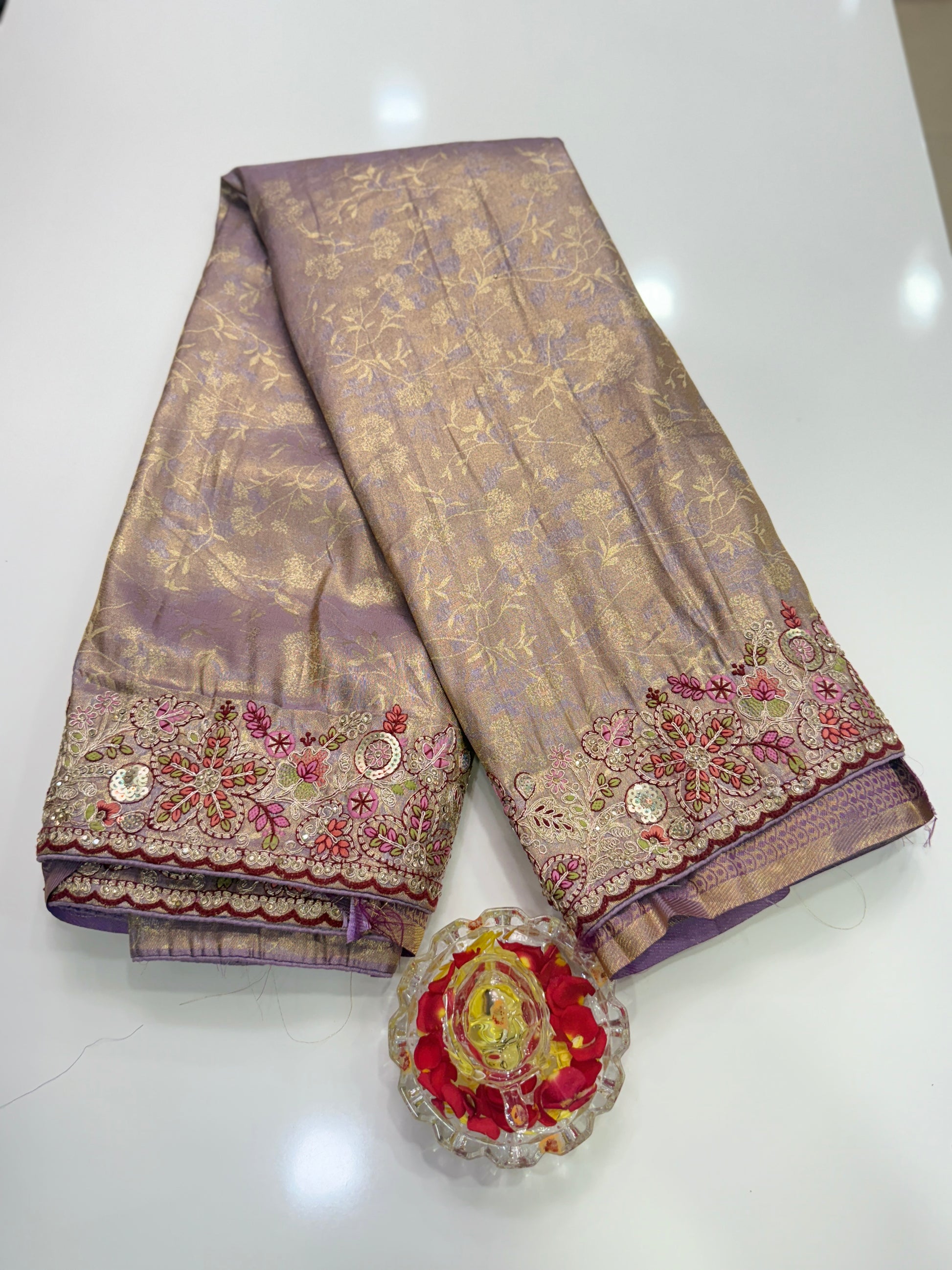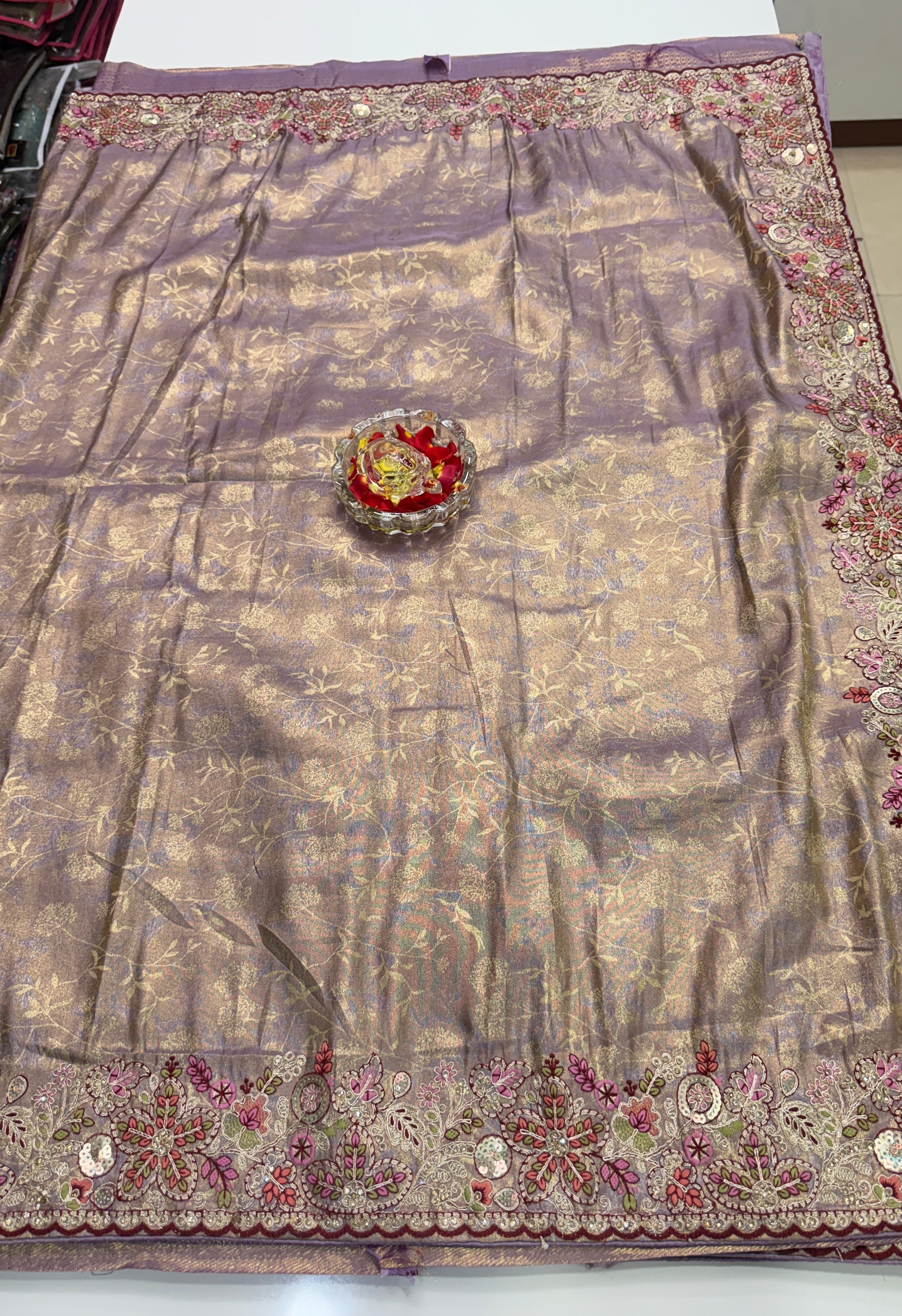 Tissue Silk Saree with Embroidery, Sequin, and Mirror Work Border – Festive Saree for Women