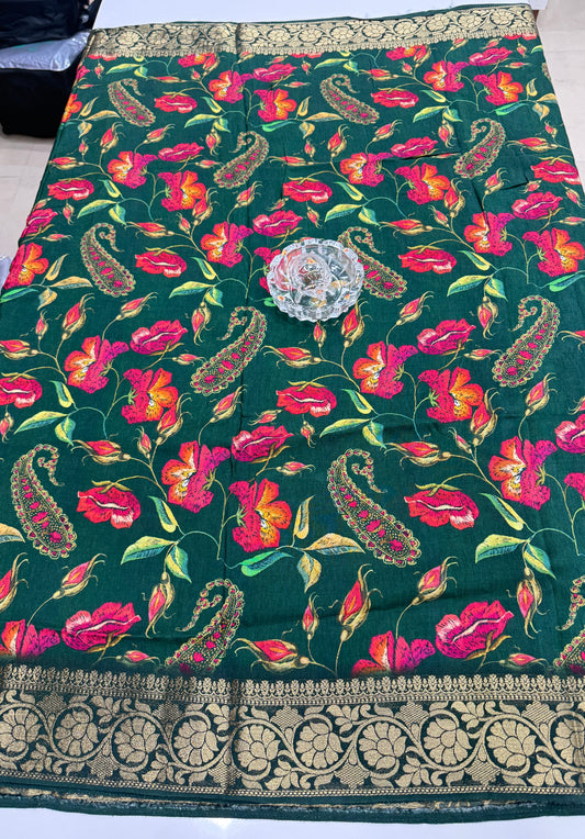 Pure Viscose Crepe silk saree with digital floral print and woven zari border for women