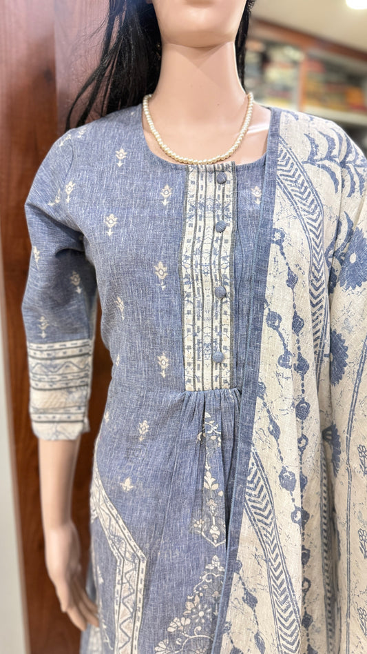 Unstitched Cotton Dress Material with Intricate Work, Cotton Bottom and Najmeen Dupatta