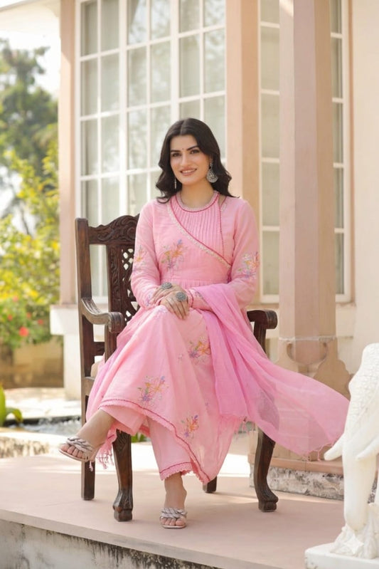 Pink Tabby Organza Anarkali Suit with Dupatta – Full Lining & Frill Pattern – Sizes M to XXL