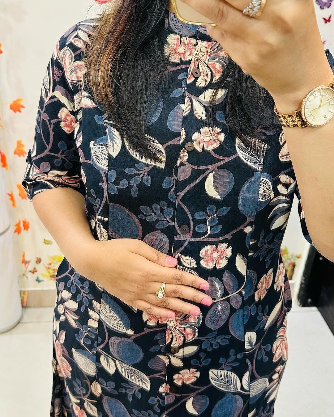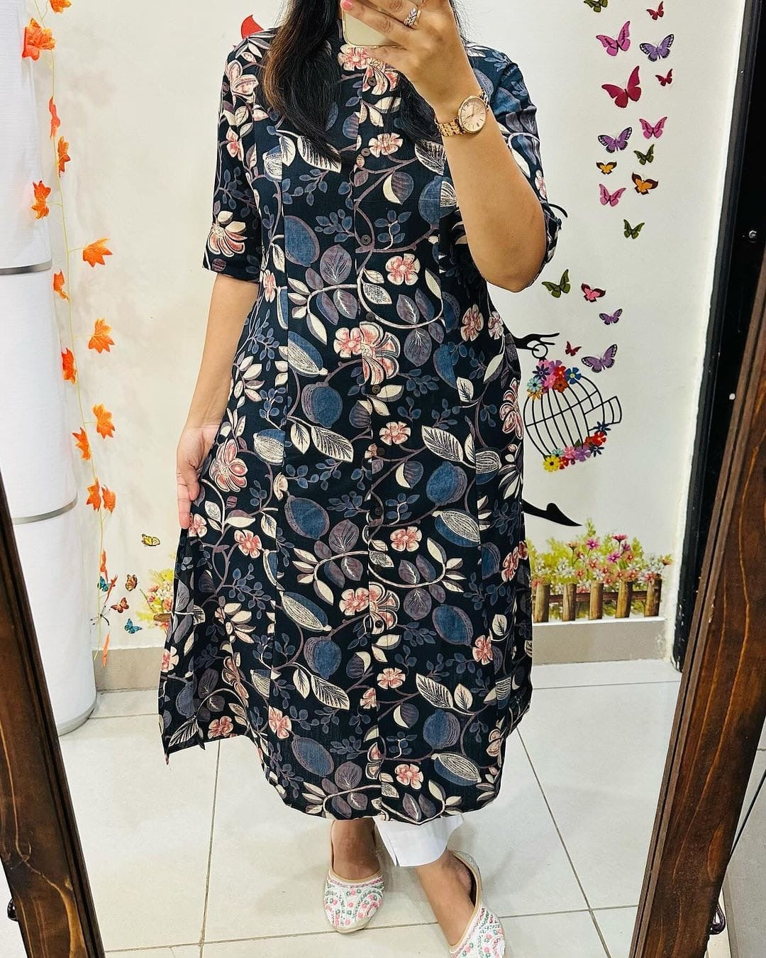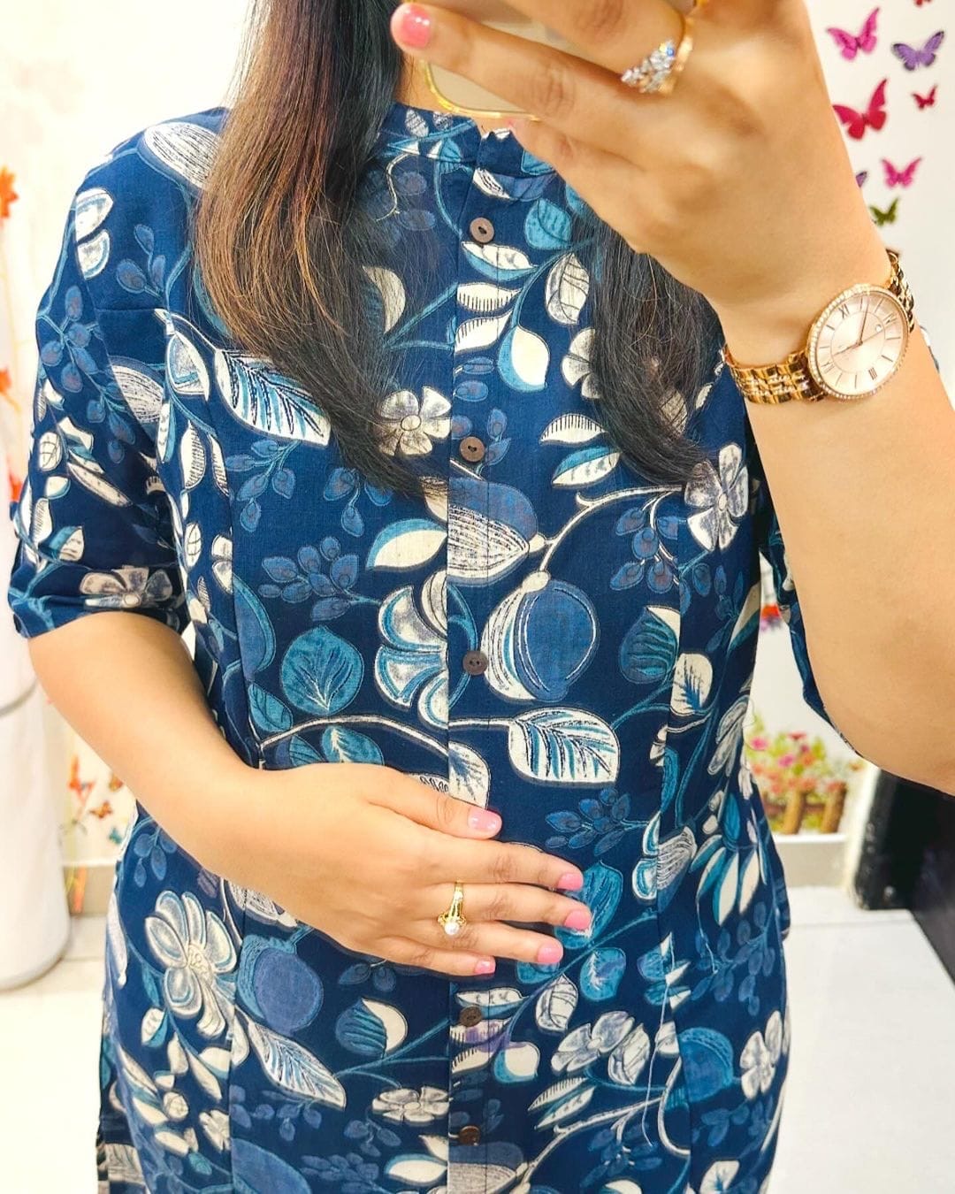 Step into breezy elegance with this premium discharge print fine cotton co-ord set designed for modern comfort and style. The A-line kurti features a graceful silhouette that drapes beautifully while offering breathability for all-day wear. It is paired with ankle-length cotton pants that complement the look with a tailored yet relaxed fit. Crafted from soft, high-quality cotton, this set is ideal for everyday sophistication—perfect for office, brunch, or casual gatherings.