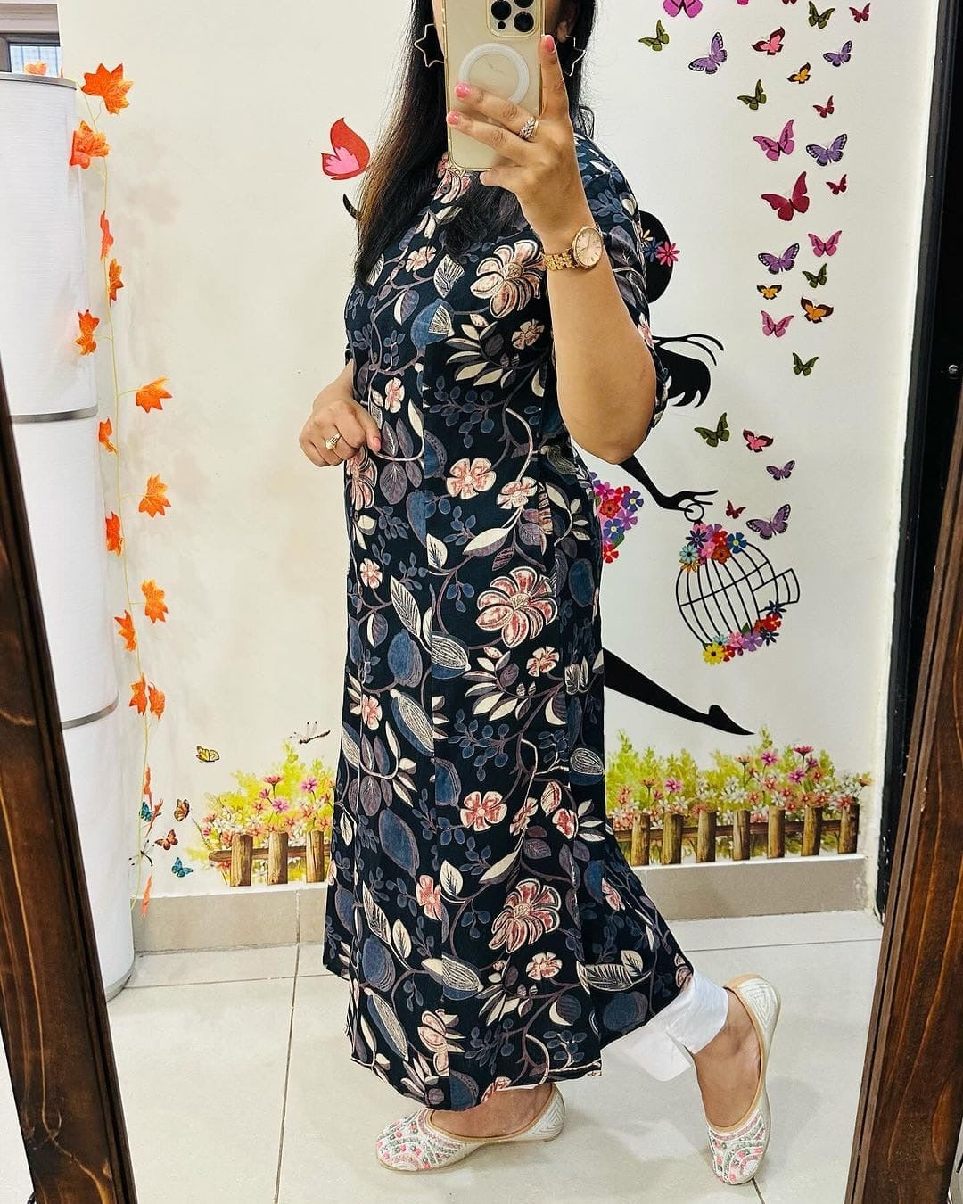 Discharge print fine cotton A-line kurti with ankle-length pant set for women – M to XXL sizes