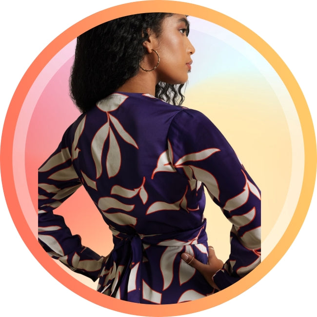 This abstract print A-line dress blends classic elegance with a modern touch, making it a versatile piece for both casual and semi-formal occasions. Crafted from soft, lightweight fabric, it features a deep navy base adorned with bold beige abstract leaf patterns. The flattering A-line silhouette offers comfort and ease of movement, while the V-neckline and long sleeves provide a balanced, timeless look. Perfect for warm-weather escapes, city strolls, or brunches, this fully stitched midi dress offers effortless style with day-to-evening wearability.