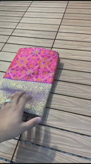 This premium Spanish Ikkat cotton saree showcases a harmonious blend of softness and design finesse, perfect for festive and elegant occasions. Featuring intricate hand acid printing and a traditional Pochampalli pattern, the saree is enhanced with a rich nylon zari border. The jacquard weave adds texture and visual appeal, complemented by four vibrant patti borders for a statement ethnic look.