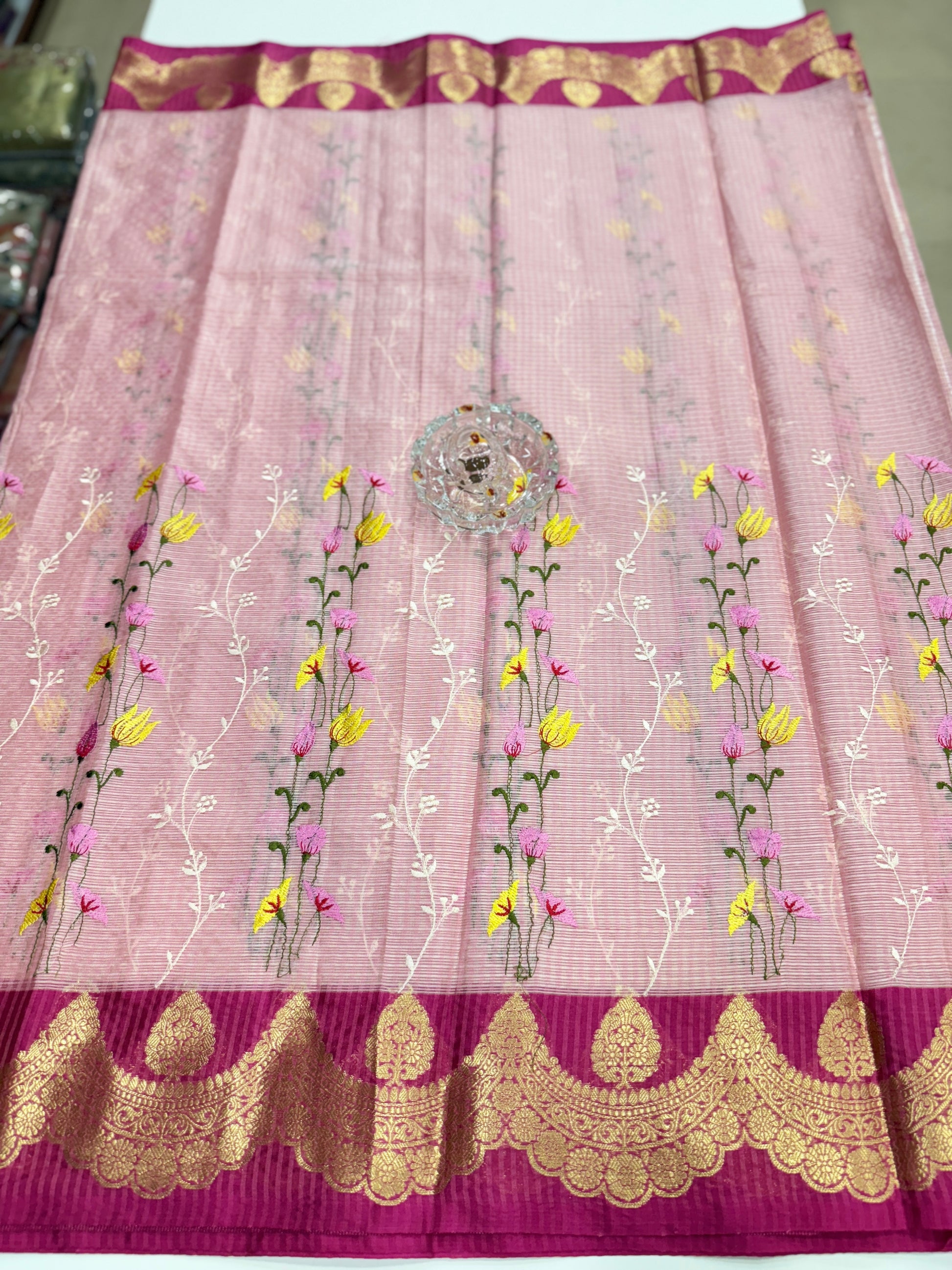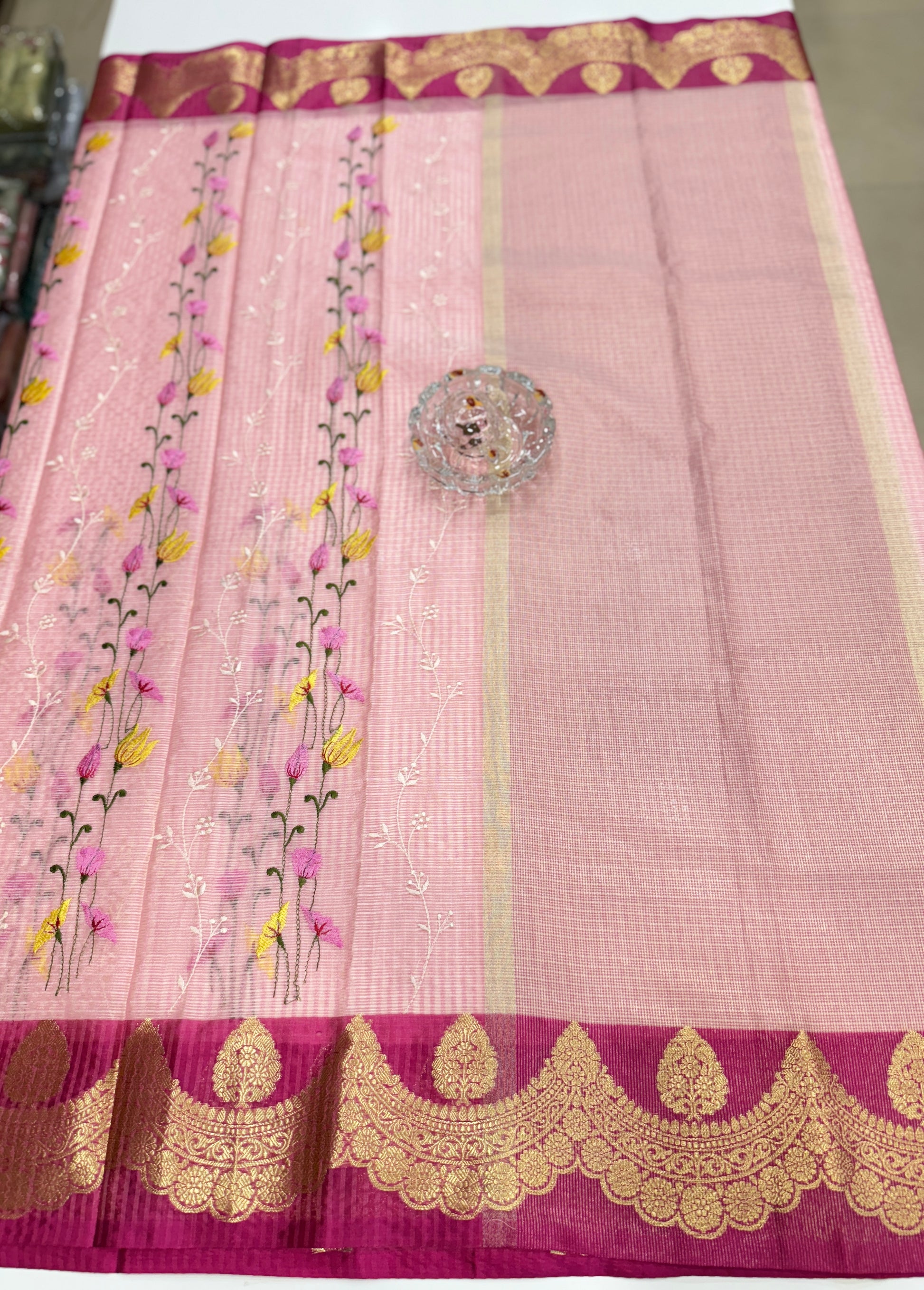Pallu: Rich zari chit pallu with intricate weaving for a festive-ready appeal