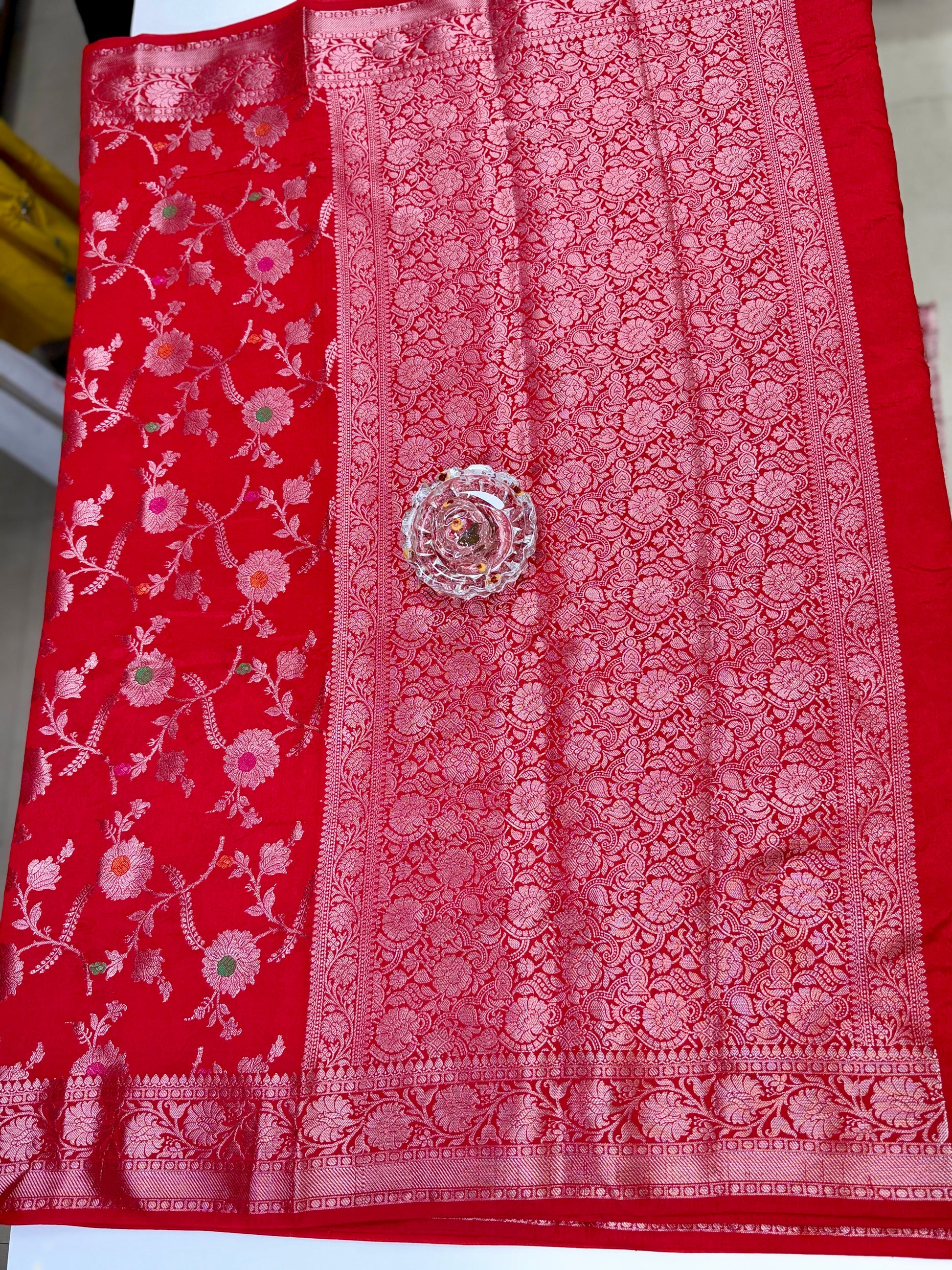 Work/Design: Intricate jaal meenakari design with gold zari weaving