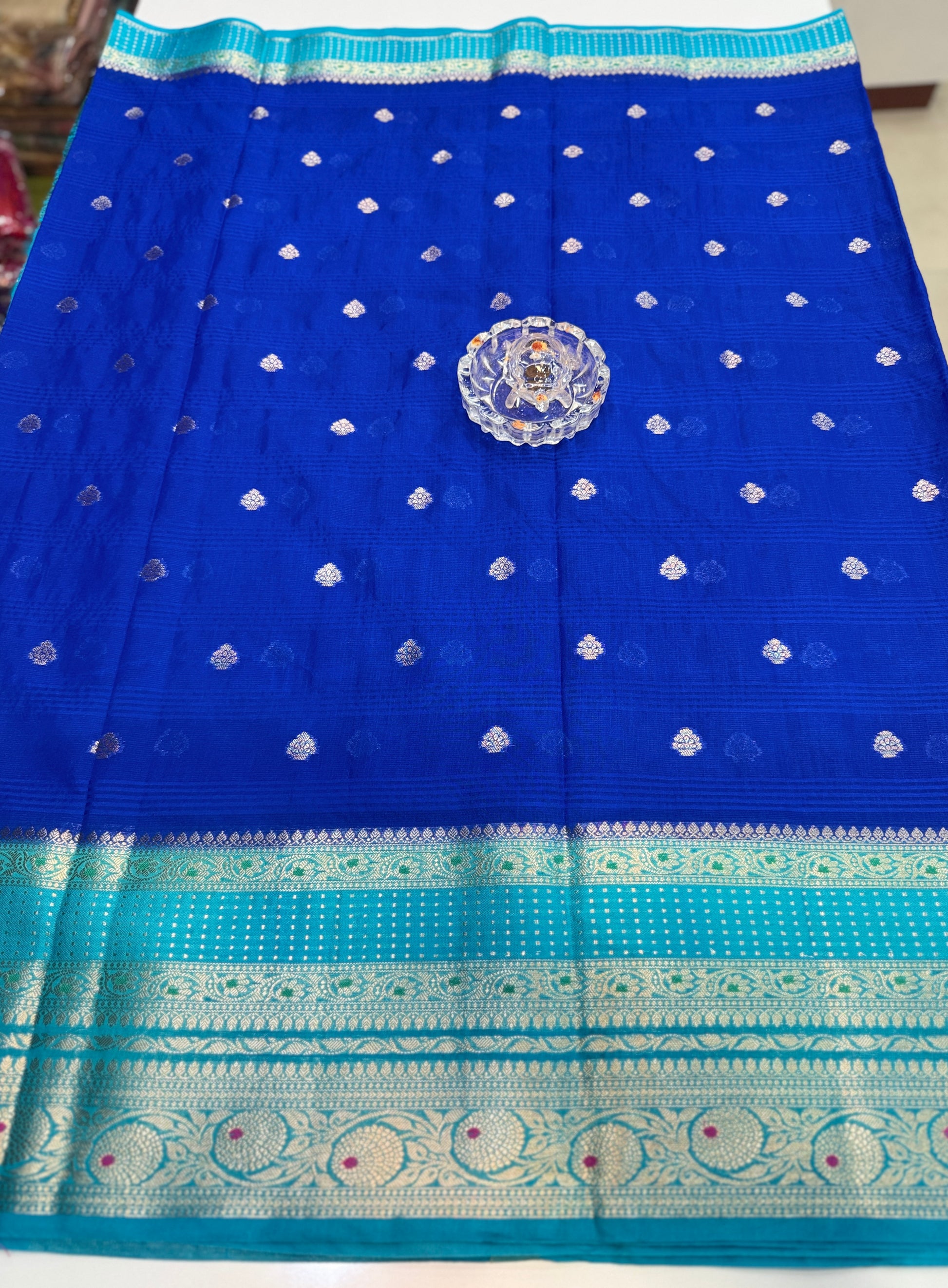 Border: Big contrast border with meenakari-style detailing