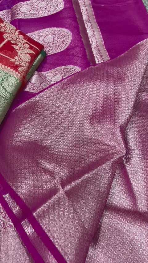 • Work: Handwoven Banarasi brocade motifs with designer rich pallu