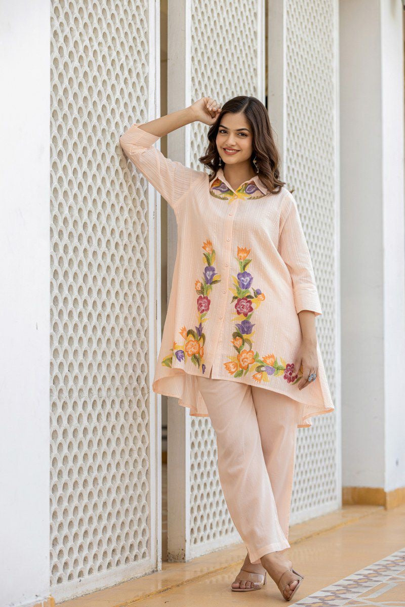 Cotton co-ord set for women with embroidered top and bottom – fully stitched ethnic casual wear