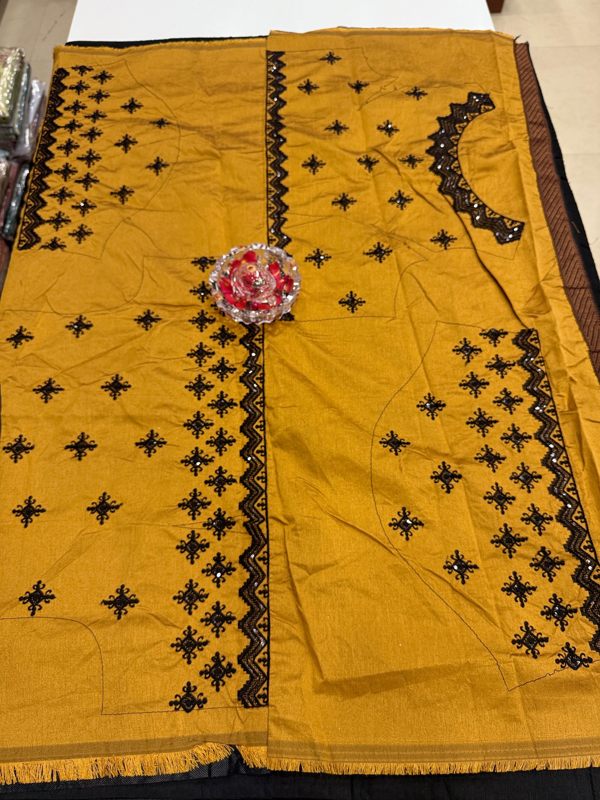 • Fabric: Premium silk saree with embroidery lace work, patchwork, and woven detailing