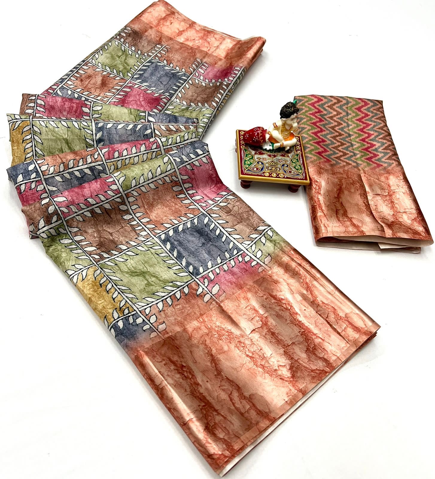 SEO Keywords: pure silk Dola saree, digital printed silk saree, festive silk saree with printed blouse.