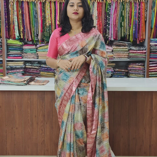 This pure silk Dola saree blends the richness of traditional silk weaving with the precision of modern digital printing. Crafted from high-quality pure silk Dola fabric, it offers a luxurious texture and smooth drape, while the vibrant digital prints bring each design to life with remarkable clarity. The matching blouse fabric, also digitally printed, ensures a cohesive and stylish look for any occasion. Lightweight yet elegant, this saree transitions effortlessly from festive gatherings to formal events, making it a versatile addition to any wardrobe. With its fusion of heritage craftsmanship and contemporary artistry, it captures the essence of timeless style.