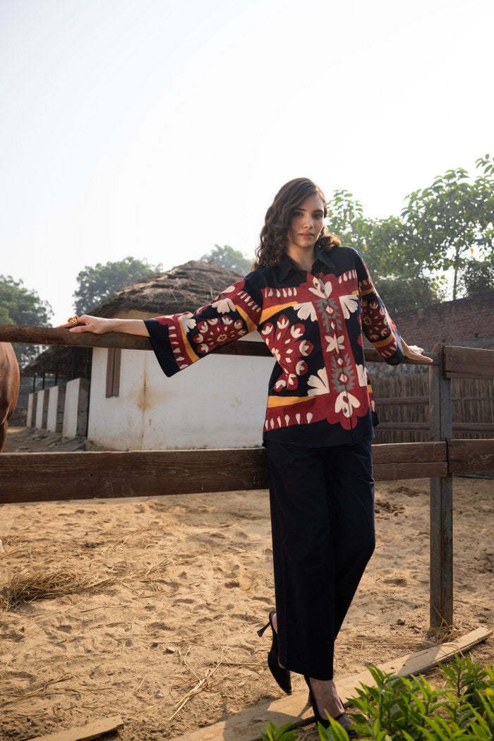 Cotton Poplin Oversized Co-Ord Set with Hand Brush Painted Design – Artistic Casual Wear for Women (Sizes 38 to 44)