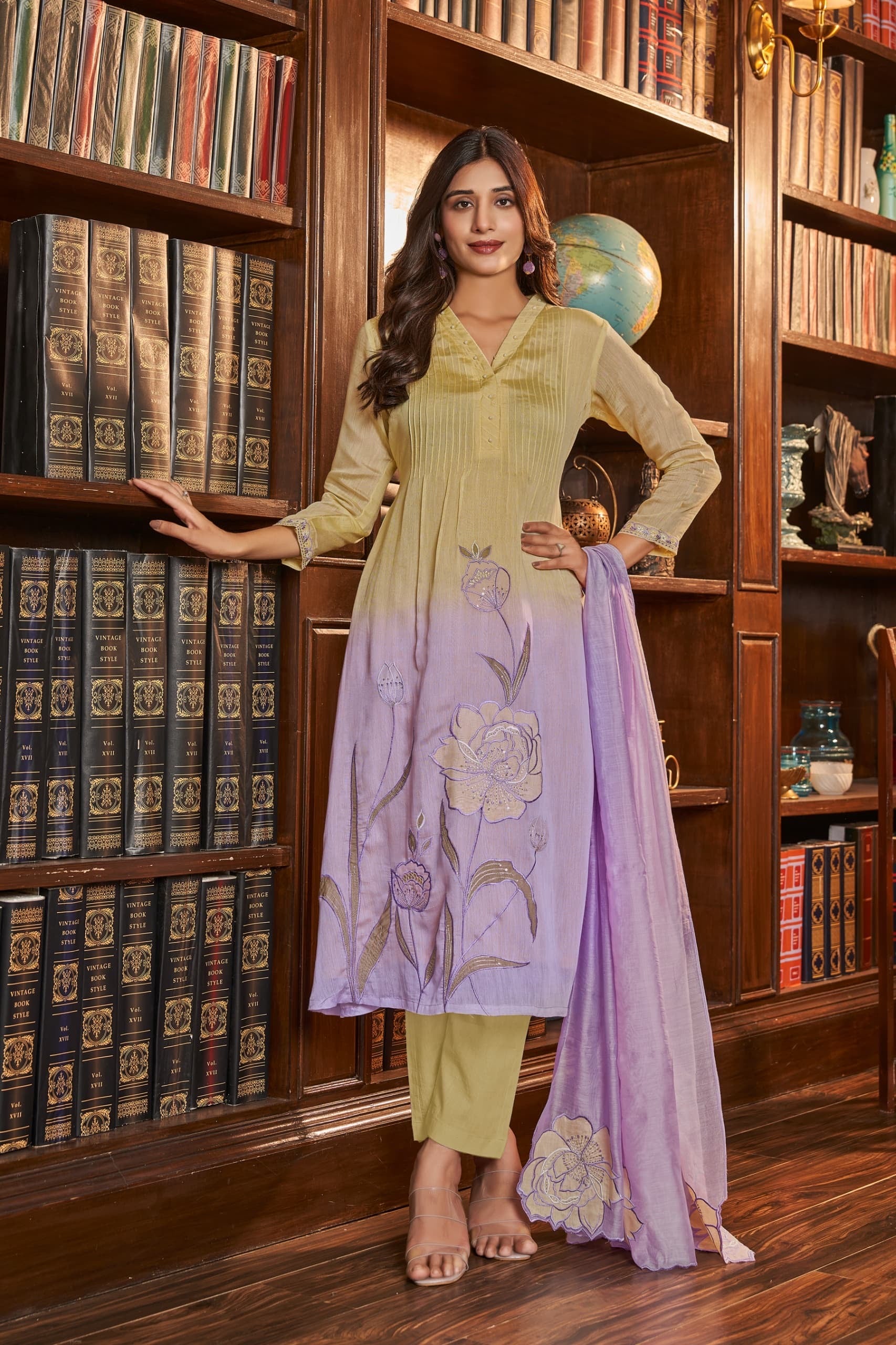 Components: Kurta, stitched pant, and matching dupatta (3-piece set)