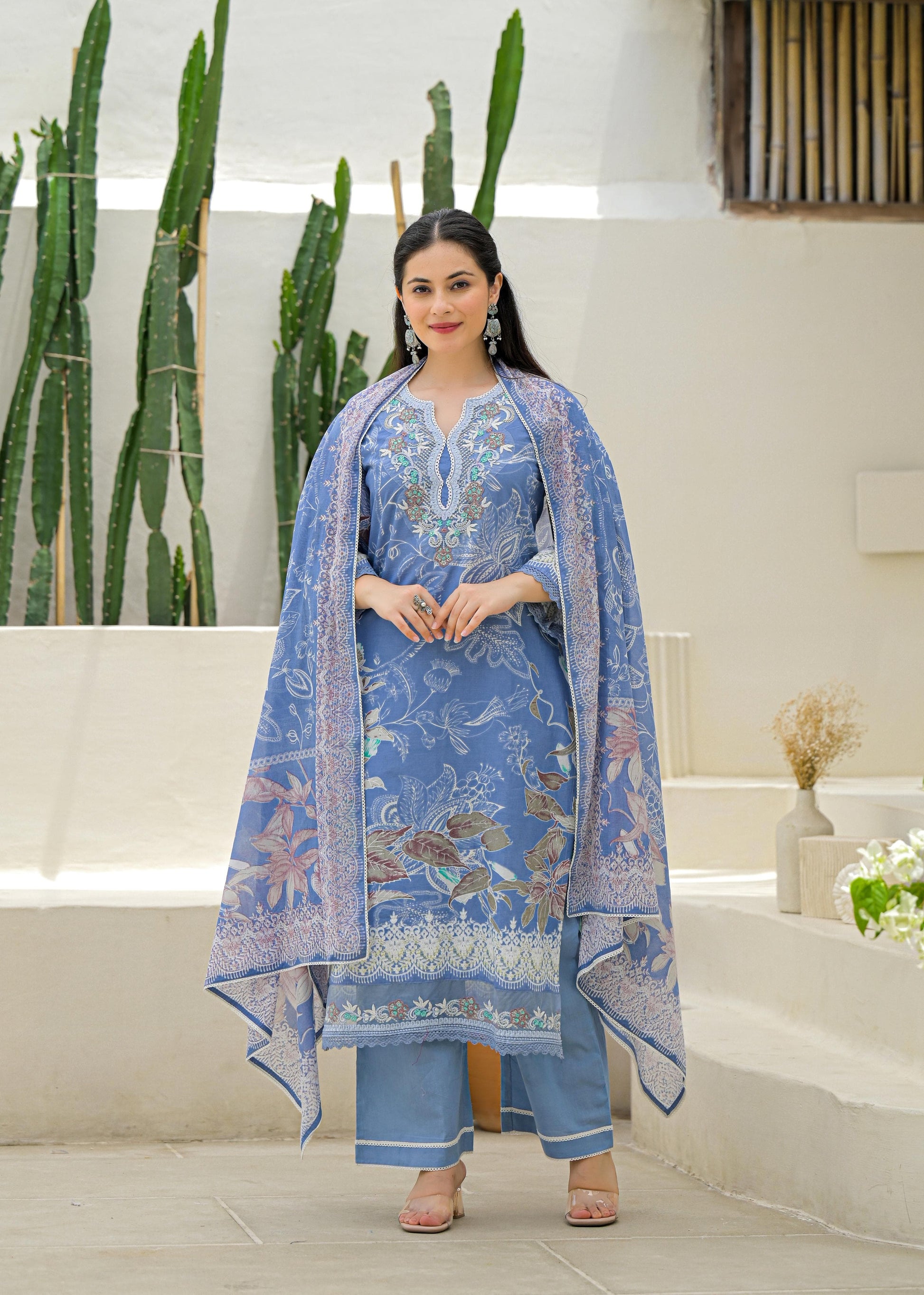 - Dupatta: Coordinated printed cotton dupatta