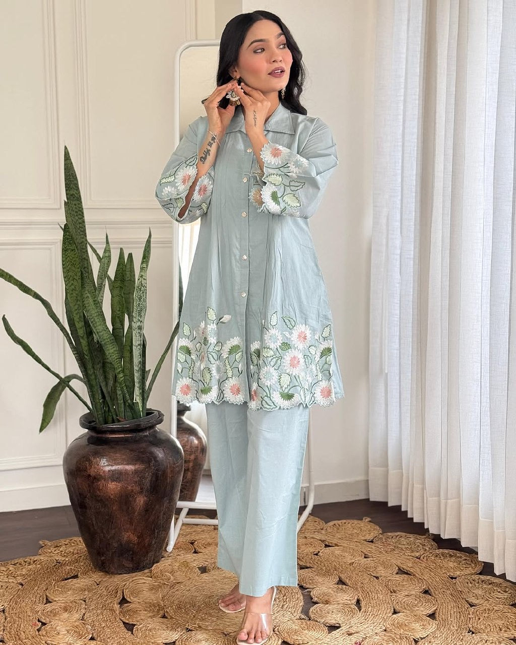 Components: Embroidered kurta + matching cotton pant