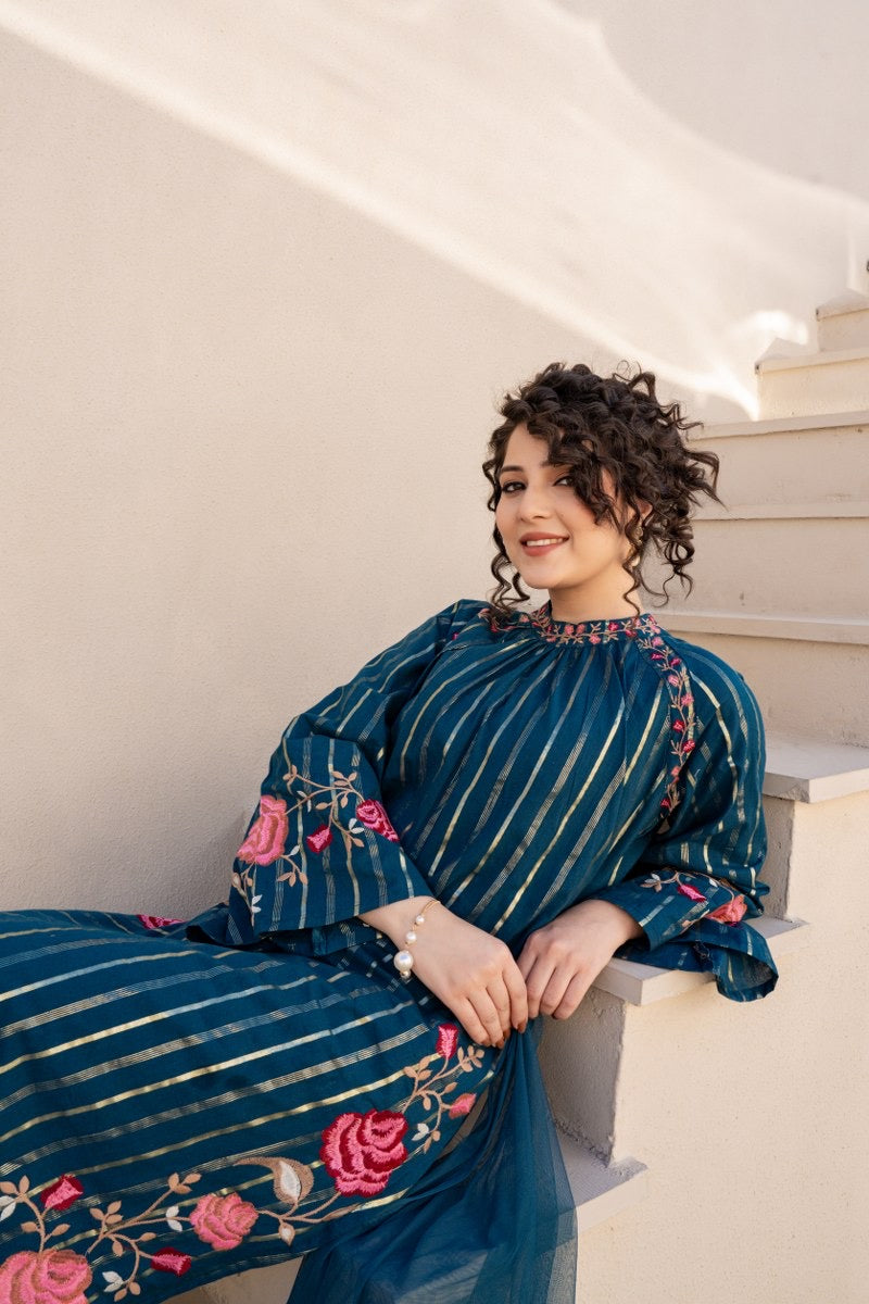 This embroidered Cotton Kurta Pant Dupatta Set offers a refined blend of elegance and comfort, perfect for everyday ethnic dressing as well as festive occasions. Crafted from pure cotton, the fabric is soft, breathable, and ideal for warm-weather wear. The kurta is delicately embroidered, giving the outfit a graceful finish that highlights traditional artistry while maintaining practicality for daily use.
