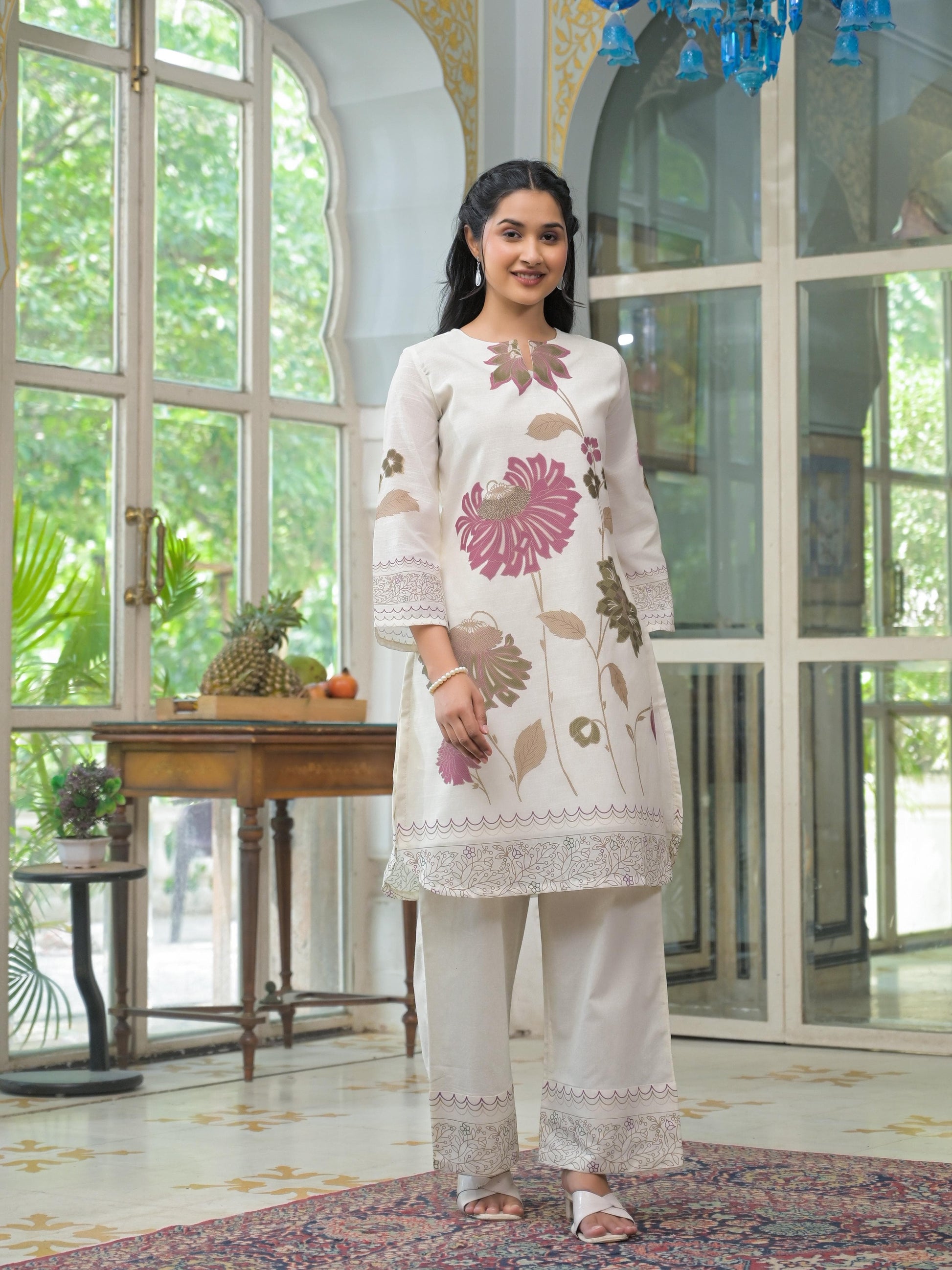 This premium co-ord set is crafted from a soft, breathable linen-cotton blend, designed for women seeking a balance of everyday comfort and understated elegance. The coordinated top and bottom offer a clean, tailored fit that makes this outfit suitable for casual outings, light festive gatherings, and office-friendly ethnic wear.