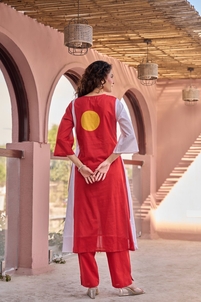 Cotton Flex Kurti Pant Set for Women, Red Printed Straight Kurti with Pant, M to XXL