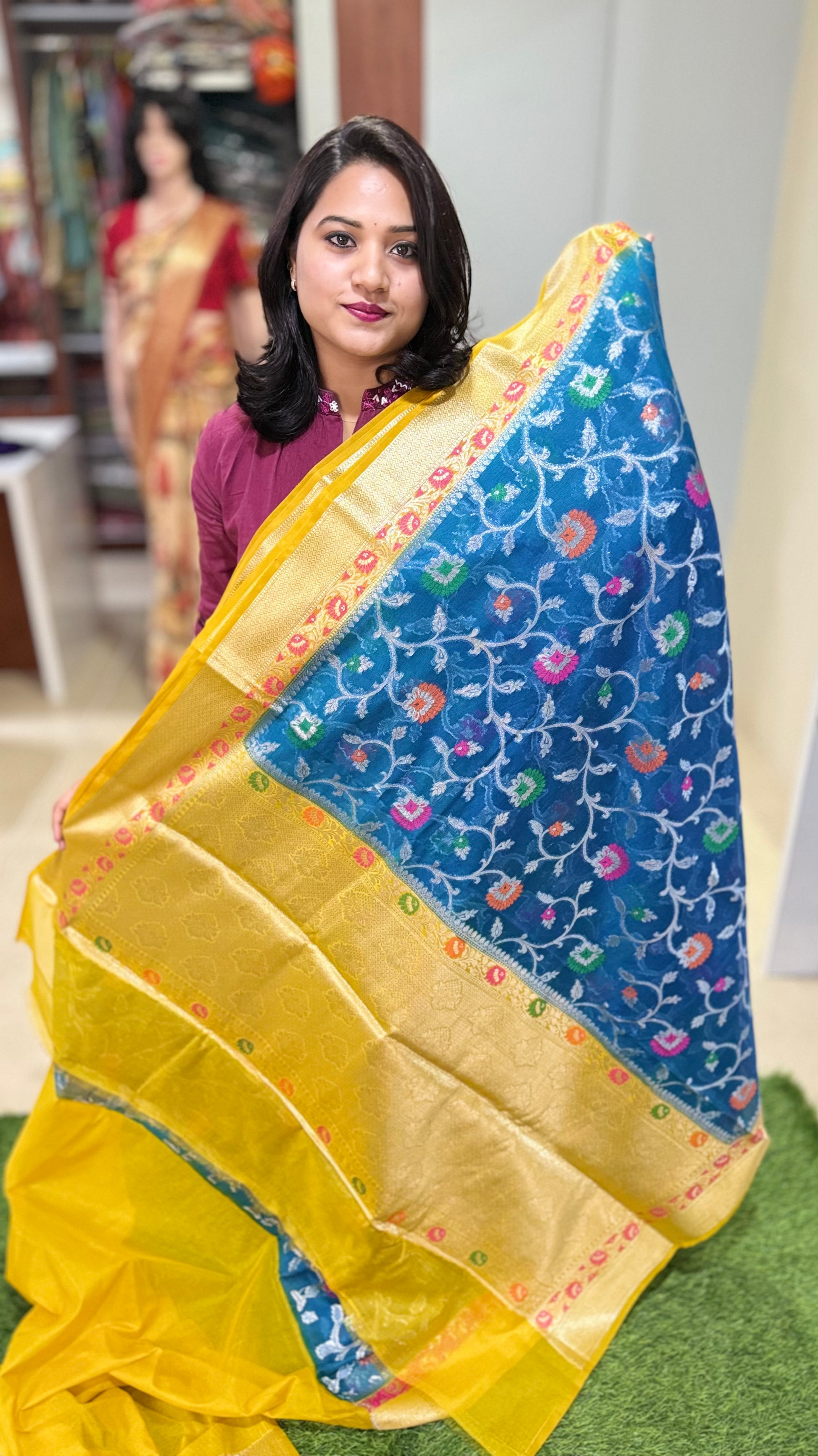 Work/Design: Full-body multi-color floral Meenakari weaving