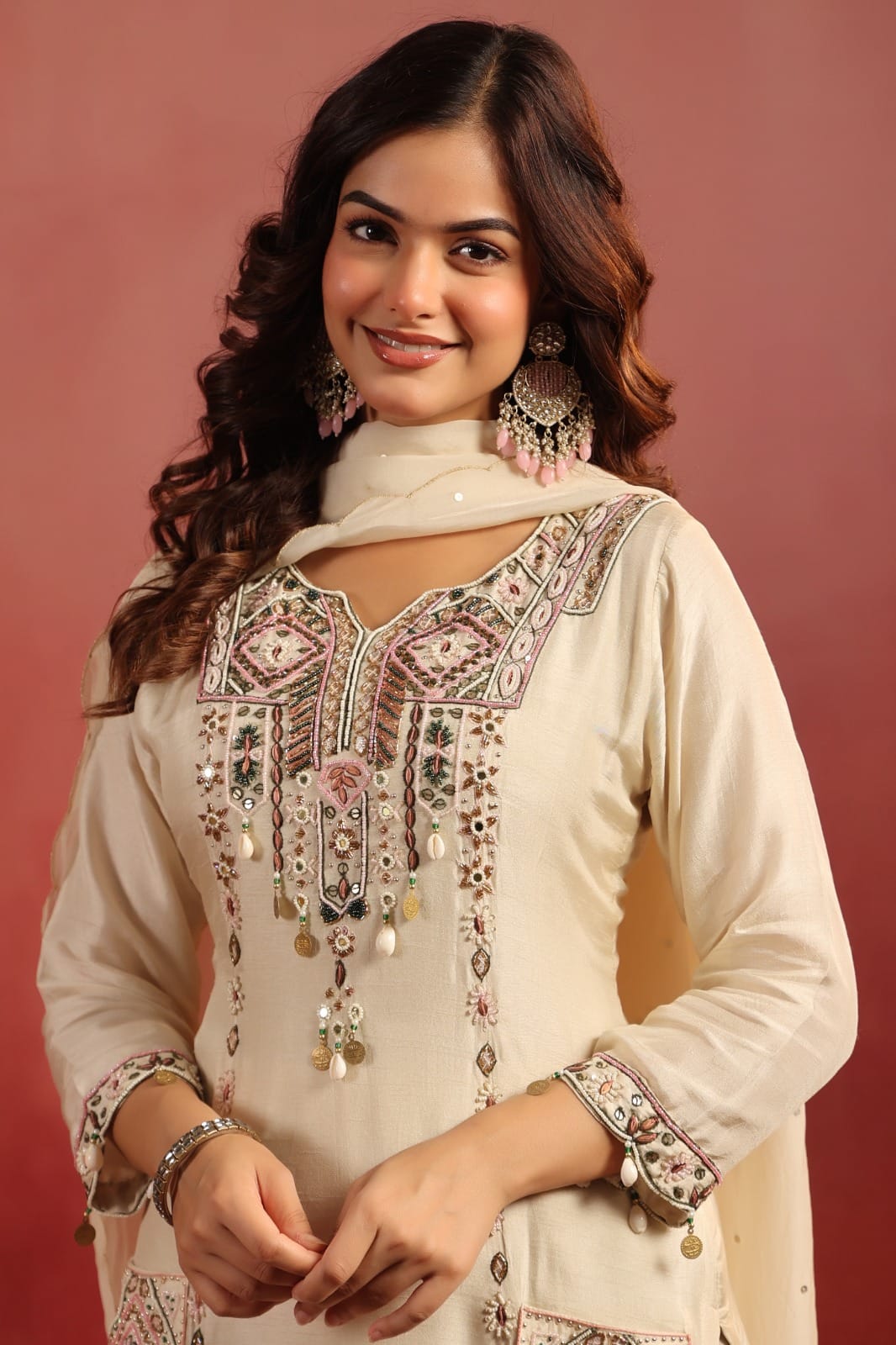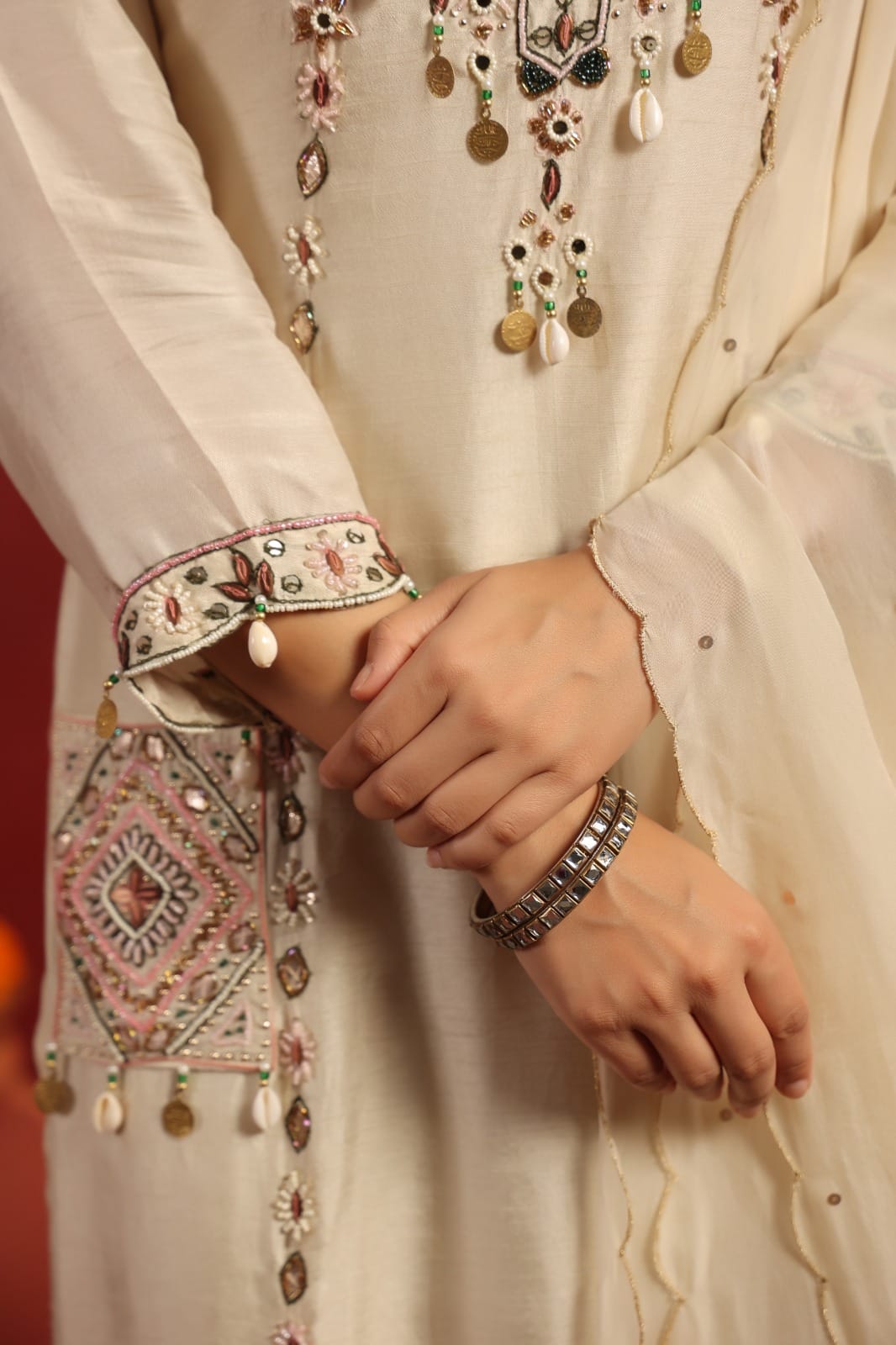 Work/Design: Embroidery detailing on kurta and dupatta