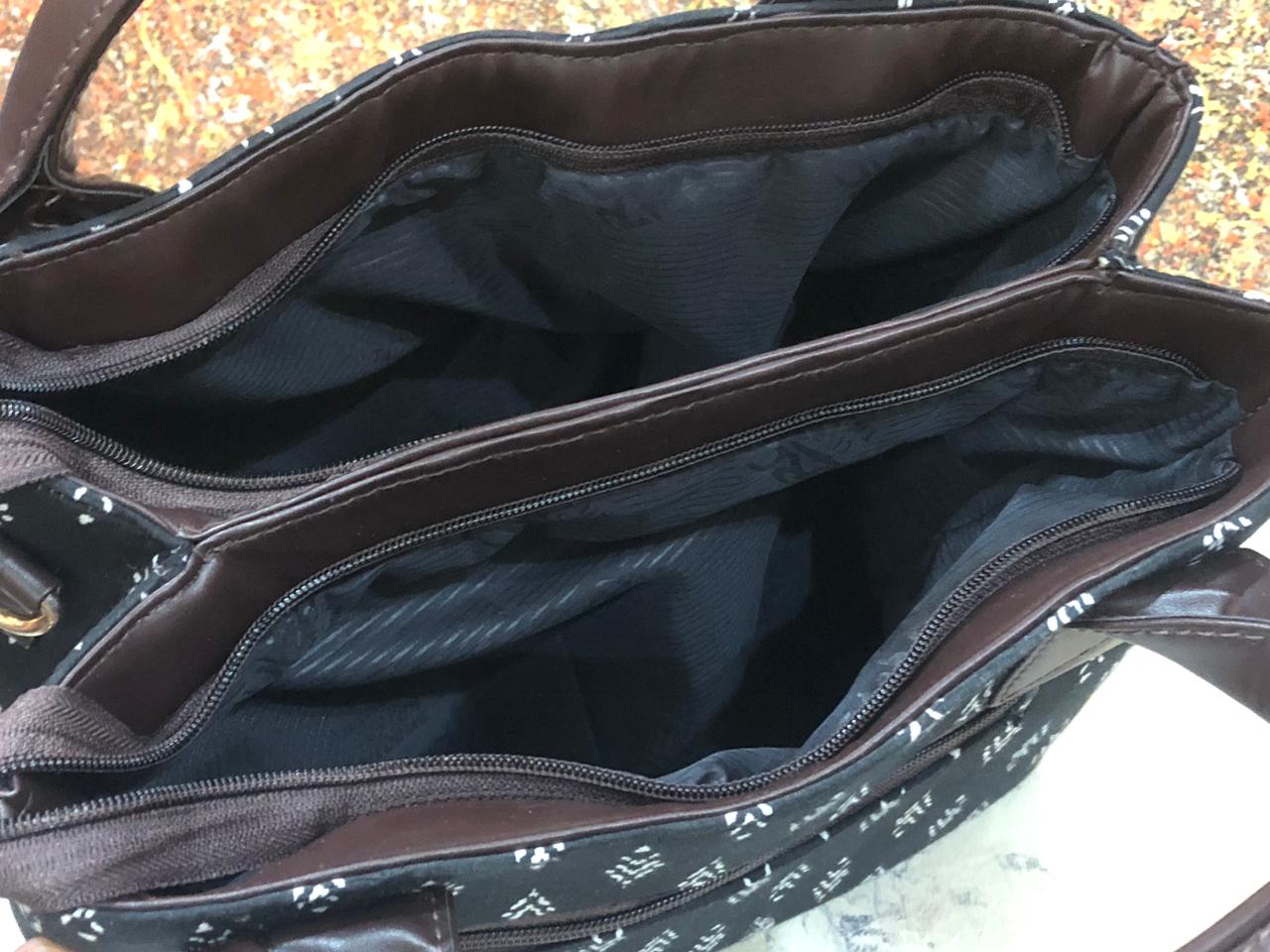 Dove Handbag cum Sling Bag in Block Printed Fabric with Double Partition and External Pouch – Women’s Bag