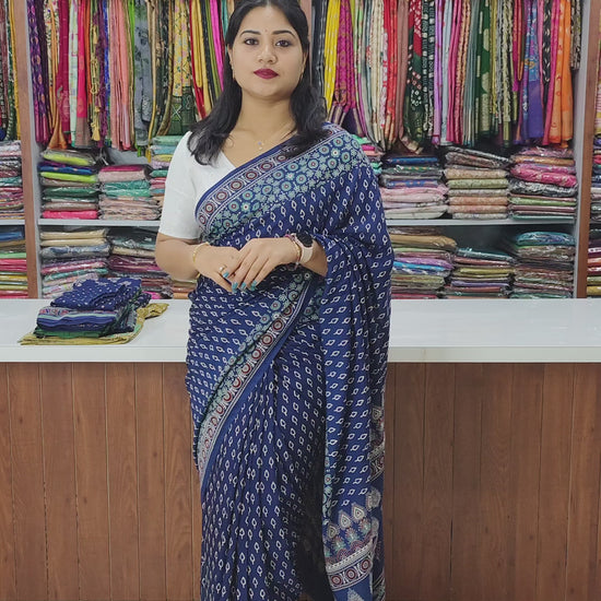 Technical Details: Premium semi modal silk base, hand block print designs, blouse fabric provided