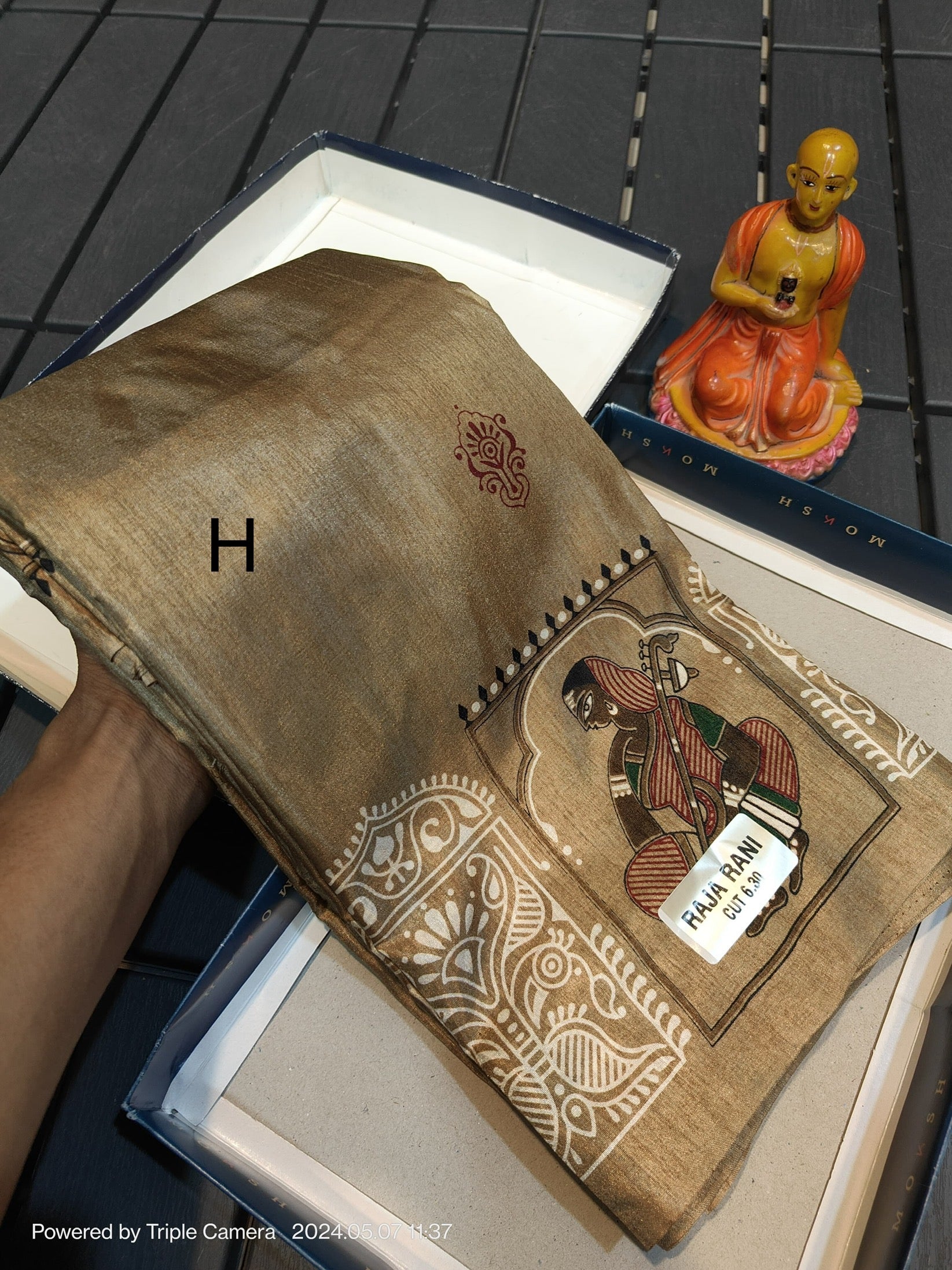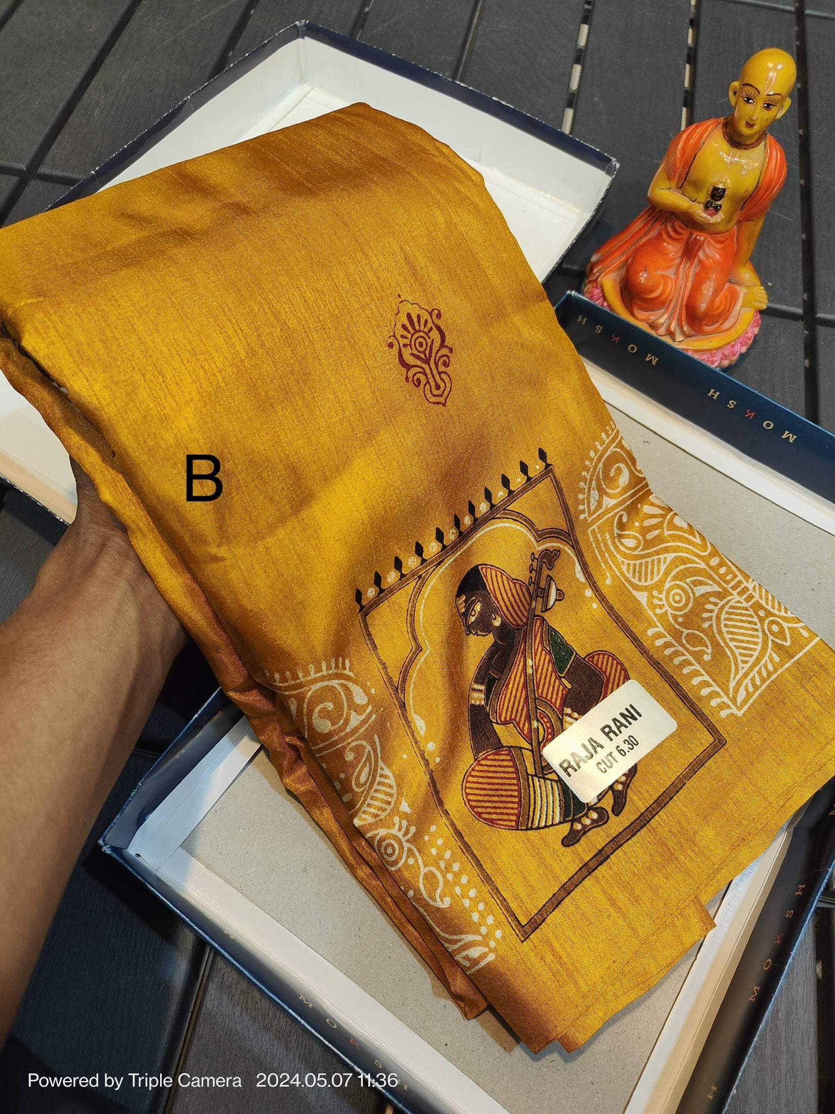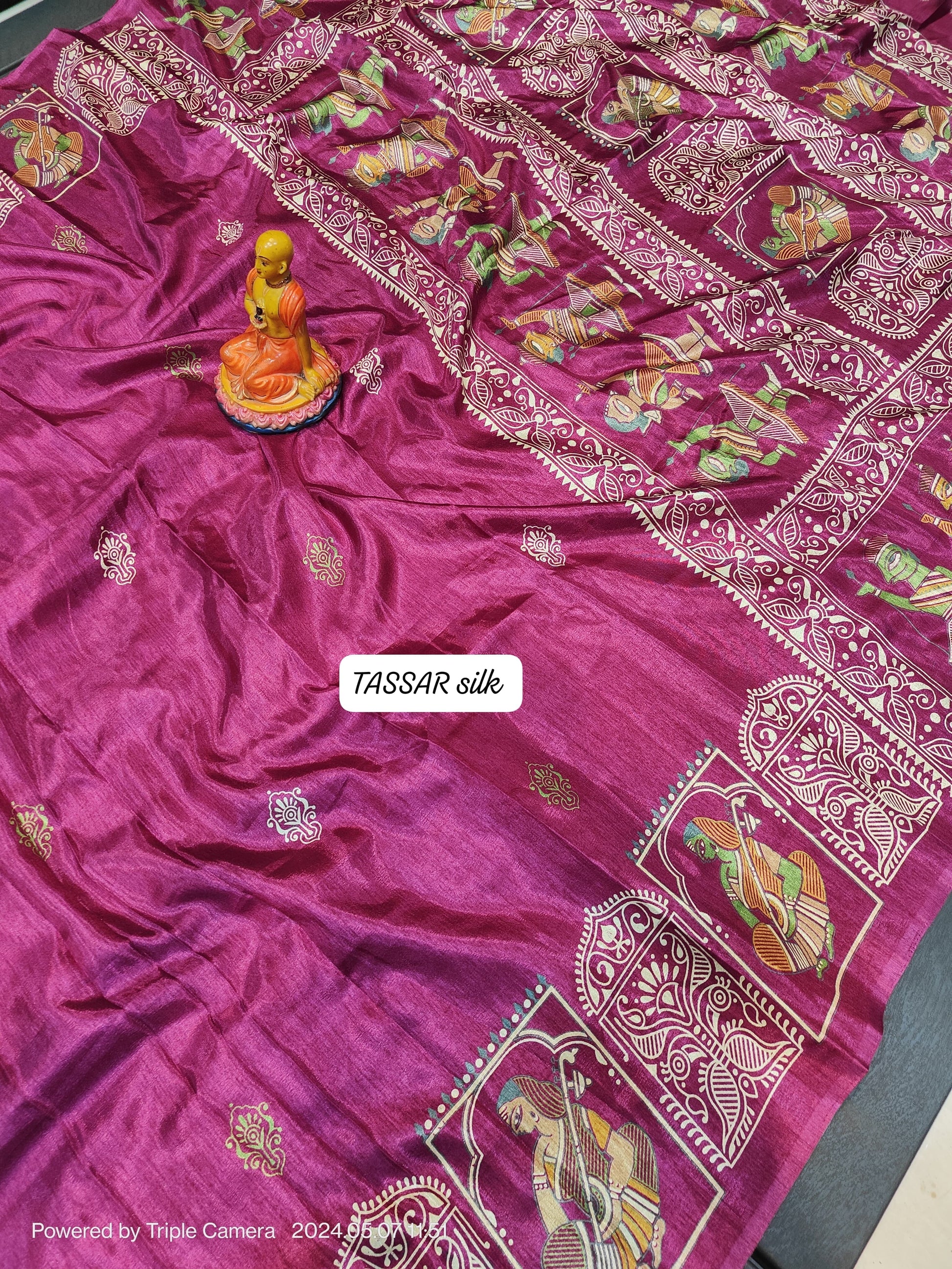Fabric: Semi tussar silk with a soft sheen and textured finish.