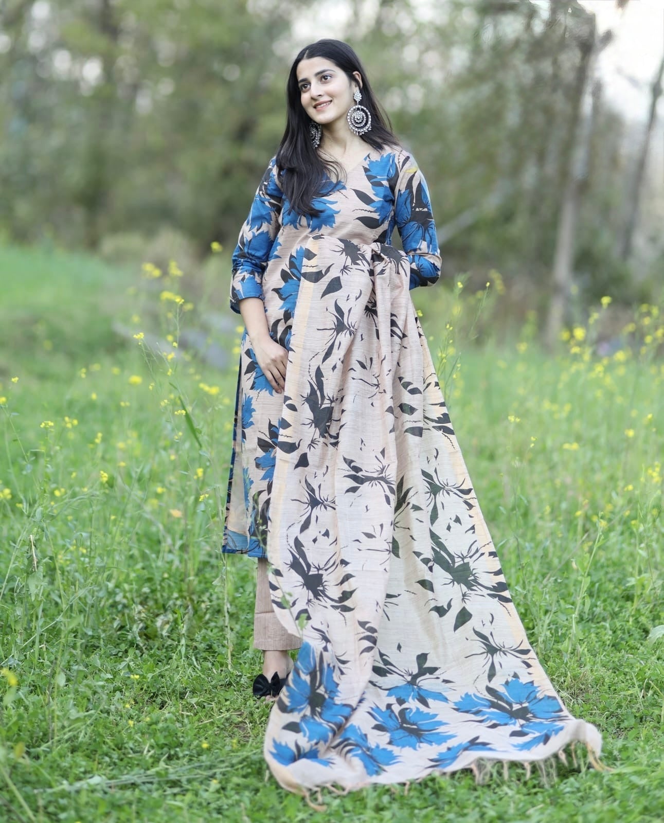 cotton silk kurti pant dupatta set, breathable cotton silk suit for women, 3-piece ethnic cotton silk outfit, soft lined ethnic set for women, everyday festive cotton silk suit