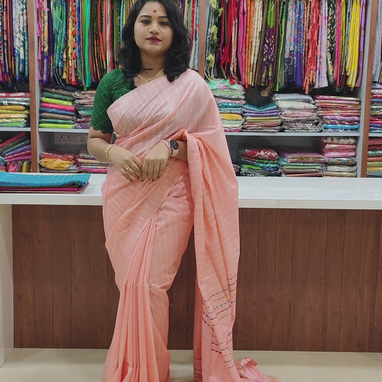 The Kota Stepal Saree is a refined drape that beautifully combines traditional weaving with modern elegance. Crafted from premium Kota Doria fabric, it is celebrated for its lightweight, airy texture that ensures comfort and ease of wear. The saree features the intricate Lab Lab design, woven with precision to showcase delicate motifs that reflect heritage artistry. Its zari-adorned border and pallu lend a subtle touch of opulence, balancing tradition with sophistication. Available in a variety of colors, this saree flows gracefully to flatter all body types, making it versatile for day or evening occasions. Paired with a matching blouse piece, it creates a complete and elegant ensemble perfect for weddings, festive celebrations, and formal gatherings.