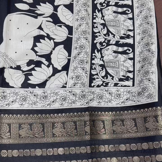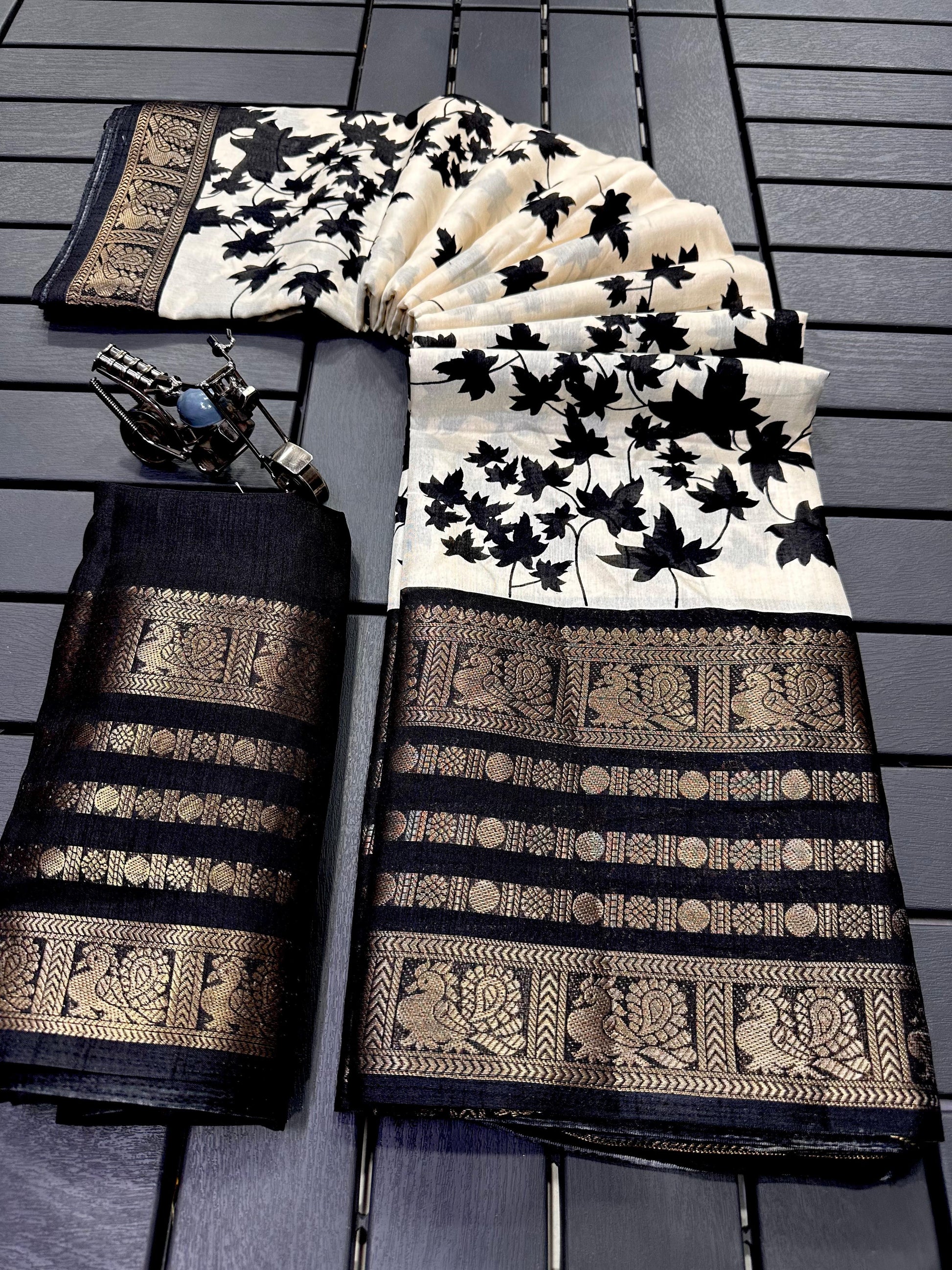 This Dola silk saree features intricate all-over jari design complemented by a rich 5-inch jacquard border, offering an elegant traditional look. The soft and breathable fabric drapes gracefully, making it ideal for festive occasions, cultural events, and traditional functions. A matching running blouse piece is included to complete the ensemble.