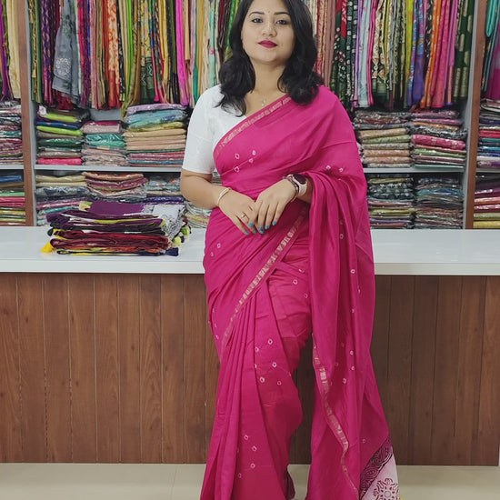 Chanderi Cotton Saree with Hand-Tied Bandhani and Block Printed Pallu – Festive Wear for Women